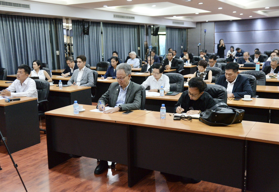 ขณะที่บางส่วนประชุมผ่านระบบซูม เช่นนายจูรี นุ่มแกัว เขต 2 จ. สงขลา นายชัยชนะ เดชเดโช รองหัวหน้าพรรค นายพศิน ปิตุเตชะ เขต 3 จ.ระยอง นายศักดิ์สิทธิ์ ขาวทอง เขต 9 จ.สงขลา