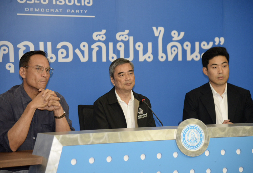 เมื่อถามว่าที่ประชุมมีการพูดถึงการจะร่วมรัฐบาลหรือไม่ ถ้ามีการทาบทามจากพรรคแกนนำอันดับ 1 นายอภิสิทธิ์ กล่าวว่า ขณะนี้ยังไม่มีการติดต่ออะไรทั้งสิ้น สิ่งที่ยืนยันได้ก็คือพรรคก็ได้แสดงท่าทีที่ชัดเจนเกี่ยวกับเงื่อนไขของการร่วมหรือไม่ร่วมรัฐบาลไปในช่วงของการหาเสียง ก็ยึดถือตามนั้นทุกประการ ไม่ไม่ต้องรอสาย