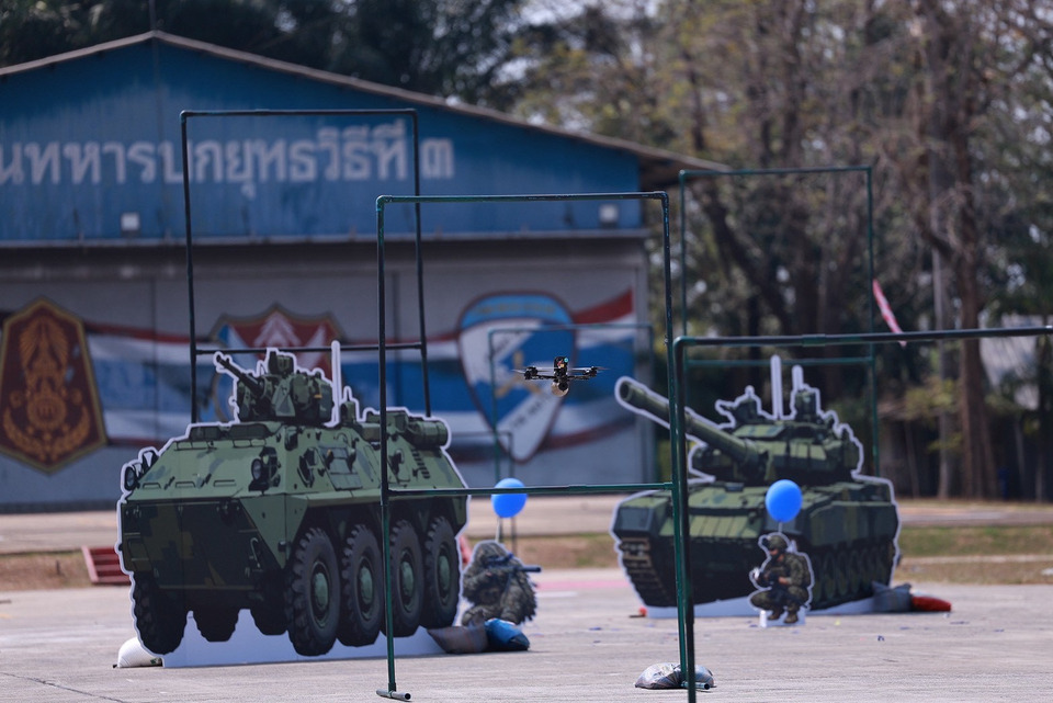 วันที่ 14 ก.พ. 2569 ก่อนการจัดการแข่งขันกีฬาภายในกองทัพบก ประจำปี 2569 โดยมีกองทัพภาคที่ 3 เป็นเจ้าภาพ ได้มีการจัดการสาธิตการแข่งขันการใช้อากาศยานไร้คนขับในภารกิจทางยุทธวิธี ซึ่งกองทัพบกเตรียมที่จะบรรจุเข้าในการแข่งขันปี 2570 ทั้งนี้ เพื่อเป็นการเตรียมบุคลากรของกองทัพบกให้มีทักษะ และพัฒนาขีดความสามารถด้านการใช้โดรนทางยุทธวิธี อันถือเป็นยุทโธปกรณ์ที่สำคัญในการปฏิบัติการทางทหารในปัจจุบัน โดยในวันนี้ พลเอก อมฤต บุญสุยา ผู้ช่วยผู้บัญชาการทหารบกผู้แทนผู้บัญชาการทหารบก เข้าร่วมรับชมการสาธิต ร่วมกับ พลโท วีระยุทธ รักศิลป์ แม่ทัพภาคที่ 2 และพลโท วรเทพ บุญญะ แม่ทัพภาคที่ 3 พร้อมคณะ