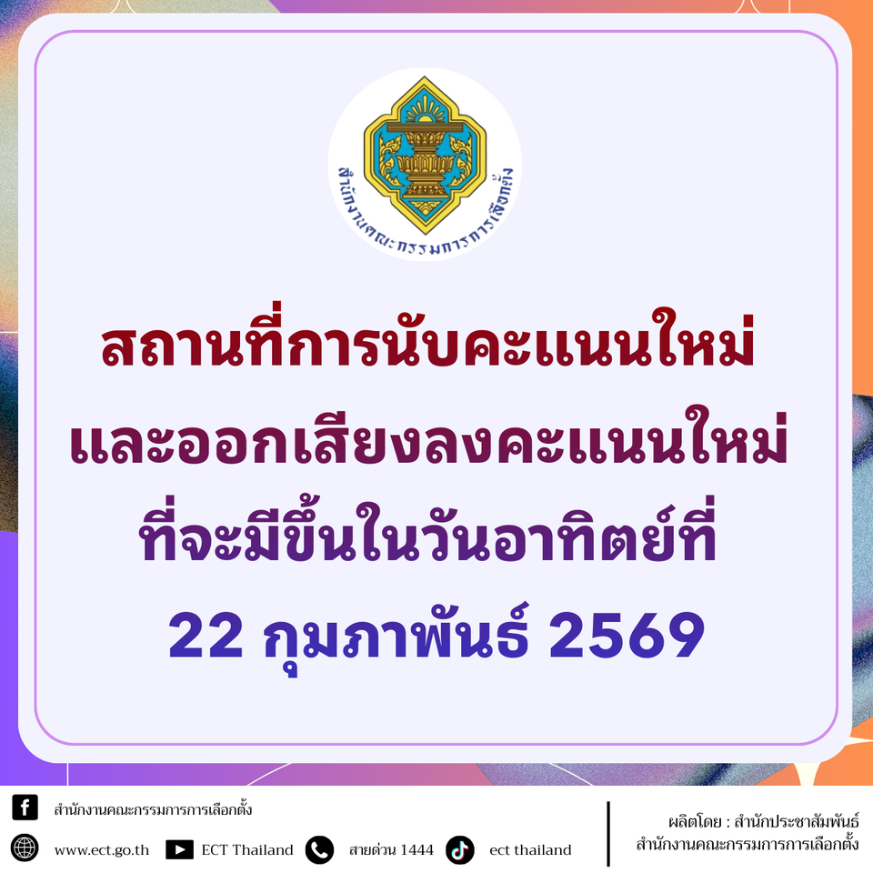 วันที่ 18 กุมภาพันธ์ 2569 สำนักงานคณะกรรมการการเลือกตั้ง (กกต.) แจ้งว่า การนับคะแนนใหม่ และออกเสียงลงคะแนนใหม่ ที่จะมีขึ้นในวันที่ 22 กุมภาพันธ์ 2569 ดังนี้