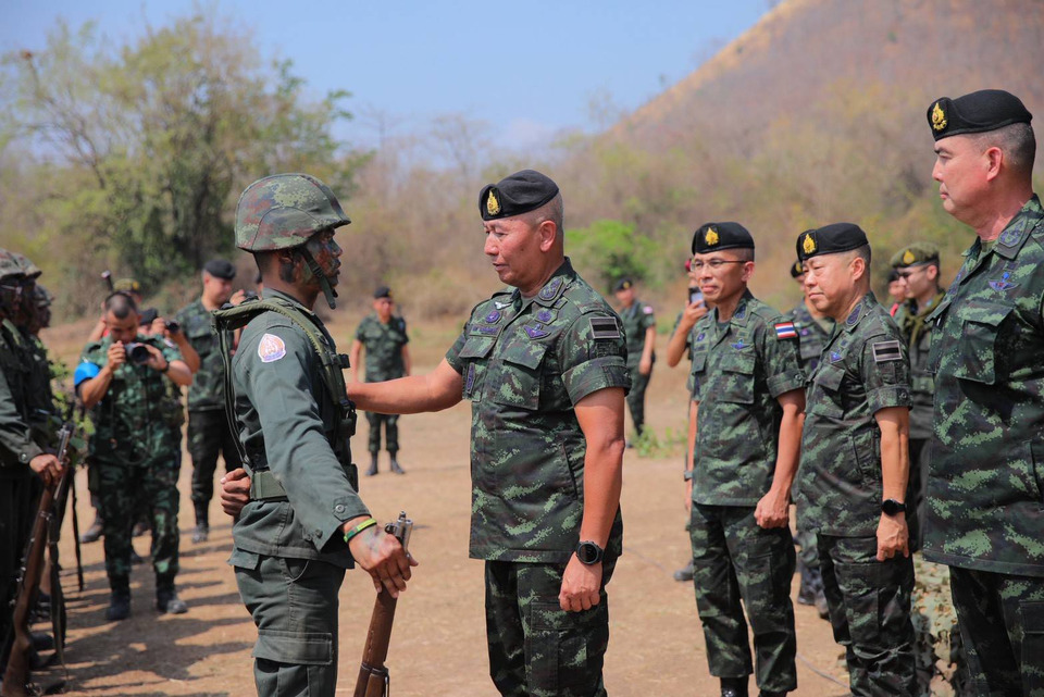 วันที่ 20 ก.พ.69 พลเอก พนา แคล้วปลอดทุกข์ ผู้บัญชาการทหารบก พร้อมคณะผู้บังคับบัญชา ตรวจเยี่ยมการฝึกภาคสนามของนักศึกษาวิชาทหาร ที่ ค่ายฝึกนักศึกษาวิชาทหาร เขาชนไก่ จังหวัดกาญจนบุรี และติดตามการปฏิบัติภารกิจของหน่วยตามแนวชายแดนในพื้นที่กองทัพภาคที่ 1 จังหวัดกาญจนบุรี โดยมี พลโท วัชรินทร์ มุทะสินธุ์ ผู้บัญชาการหน่วยบัญชาการรักษาดินแดน ต้อนรับ