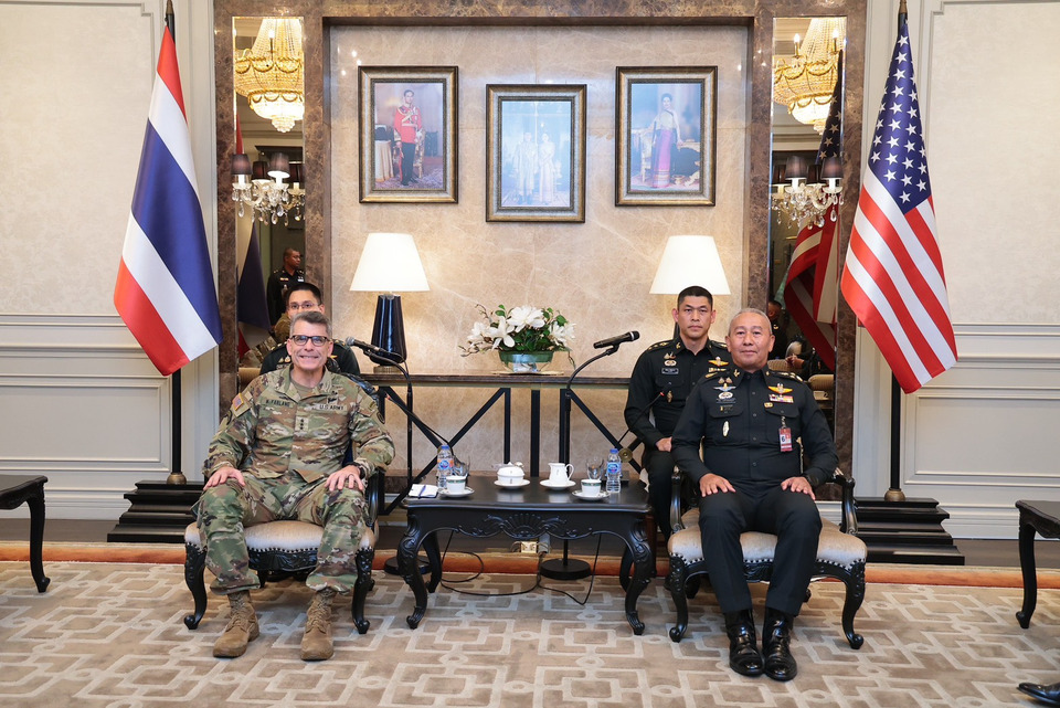 วันนี้ (23 กุมภาพันธ์ 2569) พลเอก พนา แคล้วปลอดทุกข์ ผู้บัญชาการทหารบก ให้การต้อนรับ พลโท แมทธิว แมคฟาร์เลน (Matthew McFarlane) แม่ทัพน้อยที่ 1 กองทัพบกสหรัฐฯ และคณะ ณ ห้อง จปร. อาคารพิพิธภัณฑ์กองทัพบกเฉลิมพระเกียรติ กองบัญชาการกองทัพบก เพื่อหารือความร่วมมือทางทหารระหว่างกัน ยกระดับการฝึกร่วม/ผสม Cobra Gold, Hahuman Gardian และความร่วมมือด้านการพัฒนาหน่วยยานเกราะล้อยาง Stryker