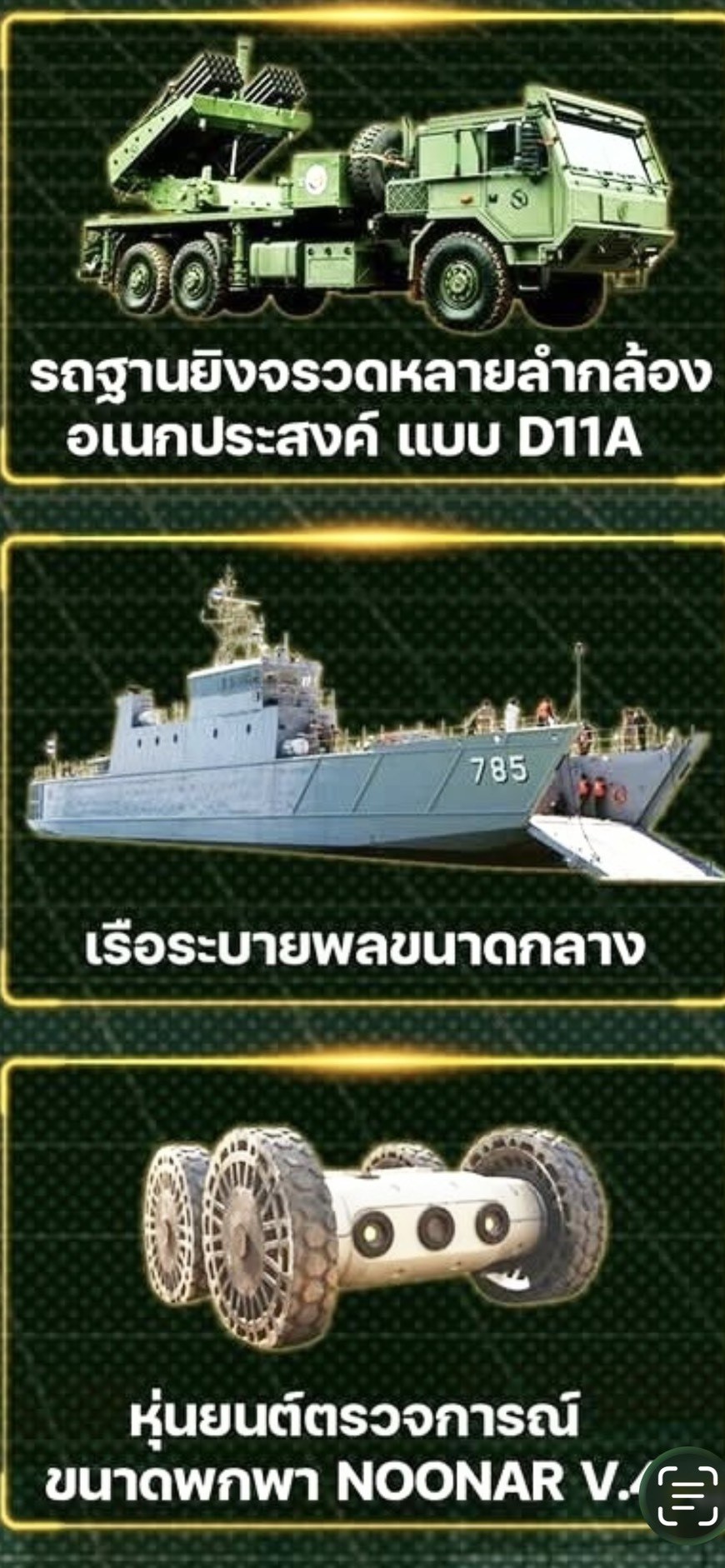 กลาโหม เปิดลิสต์อาวุธยุทโธปกรณ์สายพันธุ์ไทย “เมด อิน ไทยแลนด์” แถม หลายแบบ ร่วมสมรภูมิรบเขมร มาแล้ว!! ทั้งปืนใหญ่อัตตาจร-จรวดหลายลำกล้อง-รถเกราะหนุน อุตสาหกรรมป้องกันประเทศใช้ DTi ขับเคลื่อนใช้งานจริงในพื้นที่ปฏิบัติงาน ทั้งชายแดนอิสาน-ชายแดนใต้