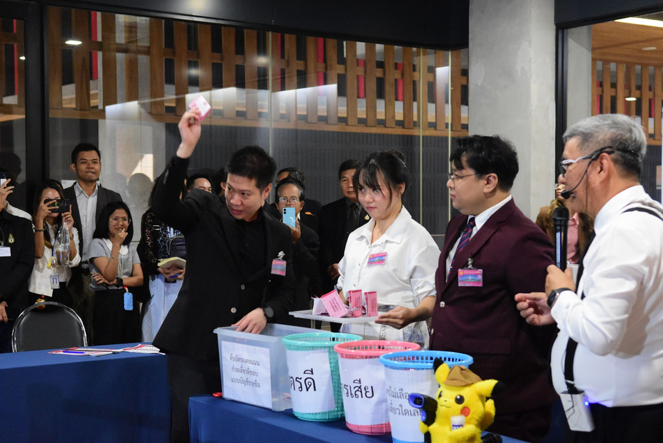 ทั้งนี้ ในระหว่างที่อาสาสมัครรับบัตรนั้นเกิดไฟดับภายในห้องที่ใช้จำลองสถานการณ์ ทำให้นายสมชัย ถึงกับเอ่ยปากแซวว่า “เป็นการจำลองที่เสมือนจริง”