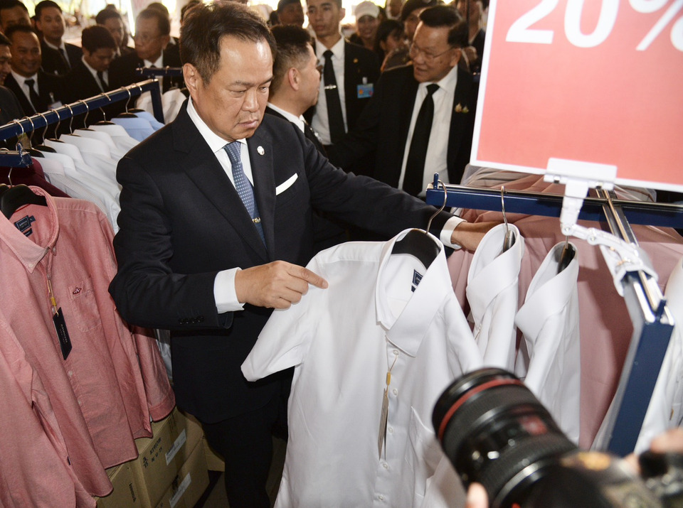 โดยนายอนุทิน ได้เดินเข้ามาผ่านสระมรกต ซึ่งบริเวณนี้ได้มีตลาดสินค้าเกษตร และร้านค้าเครื่องอุปโภคบริโภคที่วุฒิสภาได้จัดขึ้น ซึ่งนายอนุทิน ได้หยุดแวะและซื้อเสื้อกล้าม 2 ตัว เสื้อเชิ๊ตแชนสั้น 1 ตัว และเสื้อเชิ้ตแขนยาว 1 ตัว จากร้านค้าแบรนด์ โดยได้ถามพ่อค้าแม่ค้าว่า “รอคนละครึ่งกันอยู่ใช่หรือไม่” ซึ่งนายวราวุธ ศิลปอาชา สส.บัญชีรายชื่อ จะควักเงินออกให้ไปก่อน แต่นายกรัฐมนตรี บอกว่า “ไม่เป็นไร”