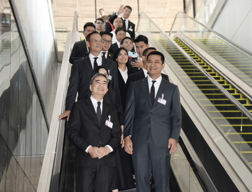 จากนั้นเวลา 10.20 น.อภิสิทธิ์ กล่าวว่า ก็พาเด็กใหม่ทั้งหลาย รวมทั้งตนด้วย เพราะไม่เคยทำงานที่นี่ ไปดูว่าที่ทำงานต่าง ๆ อยู่ที่ไหนอย่างไร