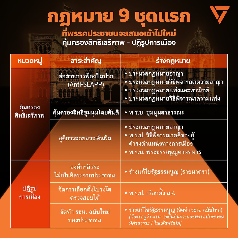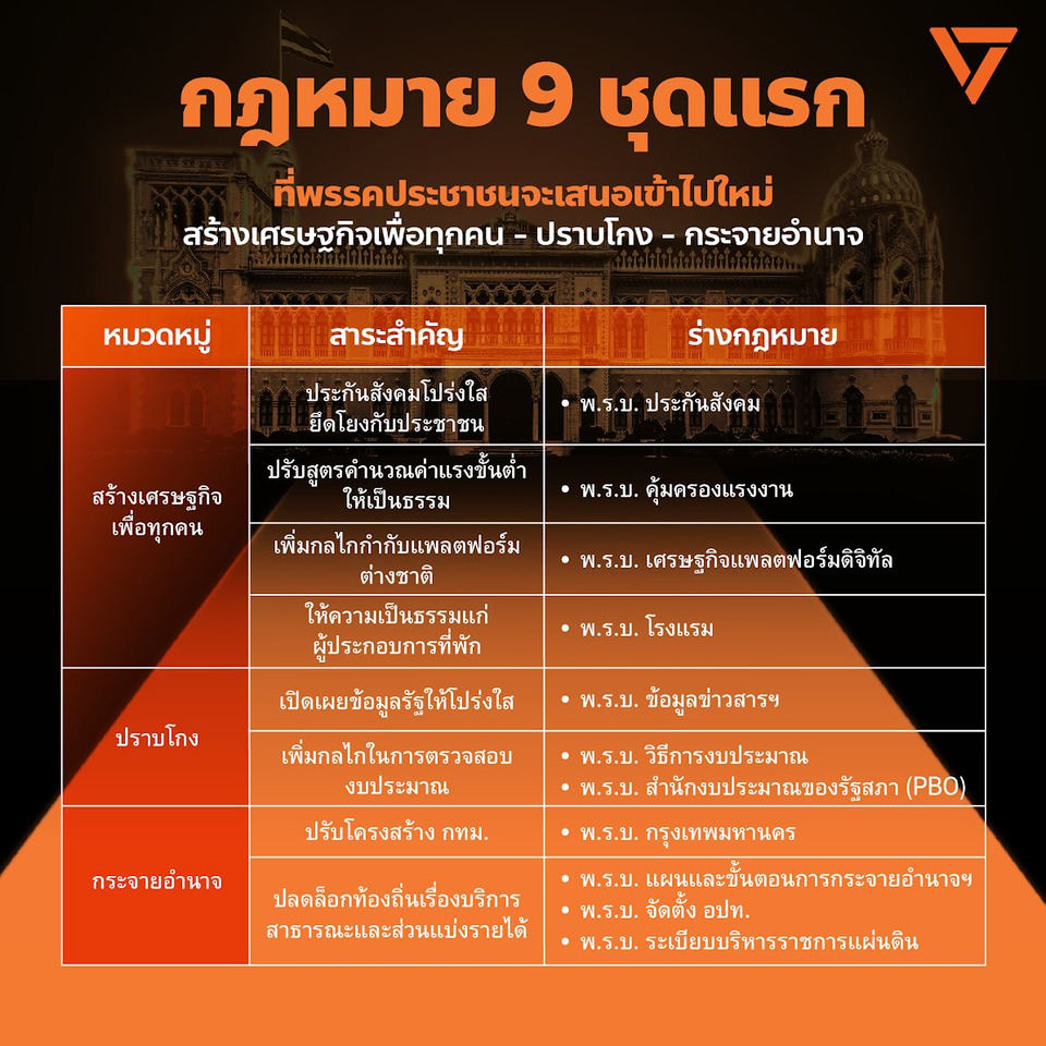 [ 1. กฎหมายที่เราจะเสนอเข้าใหม่ทันทีที่สภาเปิด โดยเบื้องต้นประกอบไปด้วย 9 ชุดแรก ]