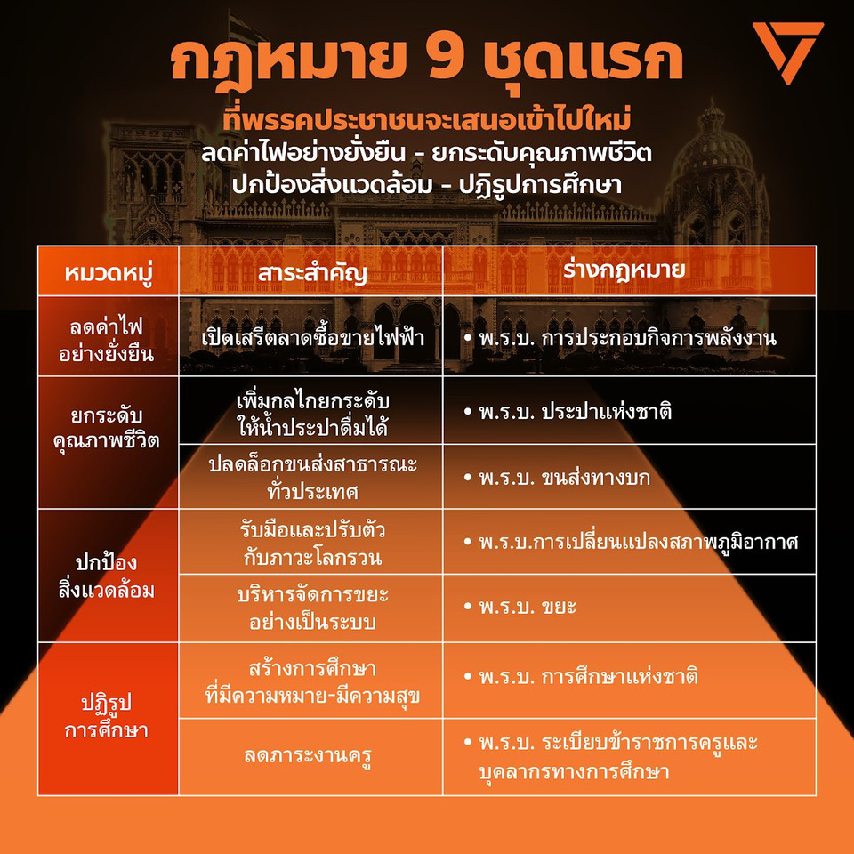 หนึ่งภารกิจด้านนิติบัญญัติที่มีความสำคัญเป็นอย่างยิ่งและที่พรรคประชาชนเริ่มเดินหน้าได้ทันทีตั้งแต่วันนี้ คือการผลักดันร่างกฎหมายที่สอดคล้องกับนโยบายที่พรรคได้นำเสนอในช่วงการรณรงค์เลือกตั้ง