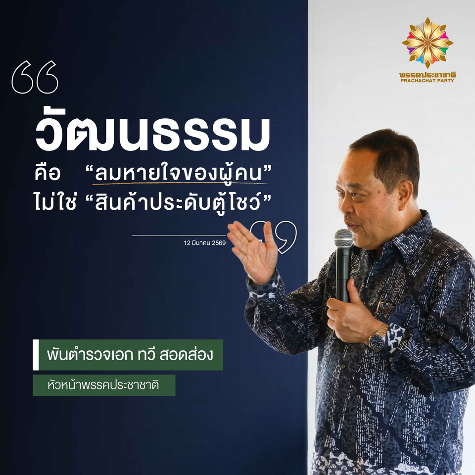 วันที่ 12 มี.ค.69 พันตำรวจเอกทวี สอดส่อง หัวหน้าพรรคประชาชาติ โพสต์ข้อความเฟซบุ๊กผ่านเฟซบุ๊ก Tawee Sodsong - พันตำรวจเอก ทวี สอดส่อง ระบุว่า...