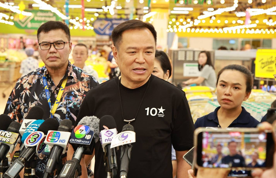 เมื่อเวลา 14.00 น. วันที่ 4 เม.ย. 2569 ที่โลตัสบางกะปิ นายอนุทิน ชาญวีรกูล นายกรัฐมนตรี และรัฐมนตรีว่าการกระทรวงมหาดไทย พร้อมด้วย นายวุฒิไกร ลีวีระพันธุ์ ปลัดกระทรวงพาณิชย์ น.ส.รัชดา ธนาดิเรก ผู้ช่วยรัฐมนตรีประจำสำนักนายกรัฐมนตรี น.ส.ไตรศุลี ไตรสรณกุล สส.บัญชีรายชื่อ พรรคภูมิใจไทย ในฐานะอดีตเลขาธิการนายกรัฐมนตรี ลงพื้นที่สำรวจราคาสินค้าที่โลตัสบางกะปิ โดยนายกฯ สวมชุดลำลอง เสื้อยืดกางเกงขายาวสีกรมท่า