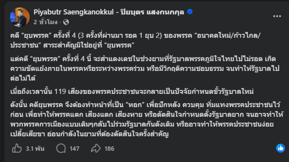 วันที่ 5 เม.ย.69 นายปิยบุตร แสงกนกกุล เลขาธิการคณะก้าวหน้า โพสต์ข้อความผ่านเฟซบุ๊ก Piyabutr Saengkanokkul - ปิยบุตร แสงกนกกุล ระบุว่า...