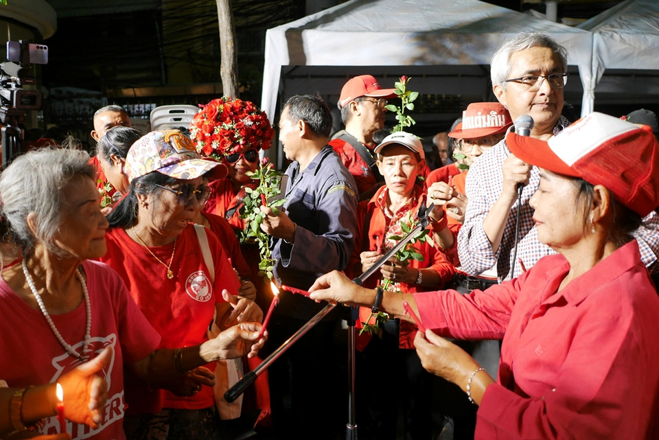 ที่ อนุสาวรีย์ประชาธิปไตย ถ.ราชดำเนิน นำโดย นายณัฐวุฒิ ใสยเกื้อ และอดีตแกนนำกลุ่ม นปช. ร่วมจัดกิจกรรม เพื่อรำลึกเหตุการณ์วันที่ 10 เม.ย. 2553 โดยมีการจุดเทียนรำลึกให้กับผู้วายชนม์จากเหตุการณ์ดังกล่าว จากนั้น ประชาชนและตัวแทนพรรคการเมืองต่าง ๆ ที่มาร่วมงาน เช่น พรรคเพื่อไทย ทยอยวางพวงหรีด และดอกไม้ ก่อนมีการปราศรัยรำลึกถึงเหตุการณ์ดังกล่าว นอกจากนี้ ยังมีเวทีบริเวณด้านหน้าอนุสรณ์สถาน 14 ตุลา (แยกคอกวัว) คู่ขนานอีก 1 จุด ก่อนเสร็จสิ้นกิจกรรมในเวลา 19.30 น.