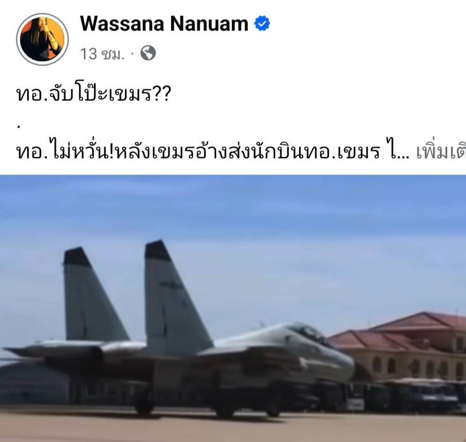 เมื่อวันที่ 12 เมษายน 2569 วาสนา นาน่วม คอลัมน์นิสต์ และผู้สื่อข่าวอาวุโสสายความมั่นคง สยามรัฐ รายงานกรณีที่มีการเผยแพร่คลิปในโลกออนไลน์ของชาวเน็ตกัมพูชาอ้างส่งนักบินกัมพูชาไปฝึกบิน J-10 C เพื่อต่อสู้กับ F16 และ กริพเพน ของกองทัพอากาศไทย ผ่านเพจเฟซบุ๊ก Wassna Nanuam โดยระบุว่า ทอ.จับโป๊ะเขมร?? ทอ.ไม่หวั่น! หลังเขมรอ้างส่งนักบิน ทอ.เขมร ไปฝึกบิน J-10C กับจีน พร้อมฝึกทิ้งระเบิด และในอนาคตจีนจะให้ J-10C กัมพูชา