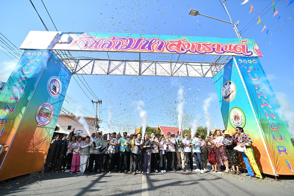 วันที่ 13 เม.ย.2569 เมื่อเวลา 15.30 น. นายวราวุธ ศิลปอาชา รัฐมนตรีว่าการกระทรวงอุตสาหกรรม เป็นประธานเปิดงานประเพณีสงกรานต์ “เย็นทั่วหล้า มหาสงกรานต์ สุพรรณบุรี” ปี 2569 บรรยากาศเป็นไปด้วยความคึกคัก ตลอดขบวนแห่ระยะทางเกือบ 2 กม. เริ่มจากพระบรมราชานุสาวรีย์สมเด็จพระนเรศวรมหาราช จนถึงสำนักงานเทศบาลเมืองสุพรรณบุรี มีประชาชนร่วมสรงน้ำหลวงพ่อโตทองคำ และร่วมชมขบวนแห่รถบุปผชาติมหาสงกรานต์ของส่วนราชการจังหวัด และอำเภอทุกอำเภอ ที่ตกแต่งอย่างสวยงาม โดยนายวราวุธ ได้พกกระบอกน้ำไม้ไผ่ ร่วมเล่นสงกรานต์รดน้ำขอพรพี่น้องชาวสุพรรณบุรี โดยเฉพาะผู้มากประสบการณ์รุ่นนายบรรหาร ศิลปอาชา นายกรัฐมนตรีคนที่ 21 ที่นั่งอยู่ในบ้าน พร้อมถ่ายภาพร่วมกันกับพี่น้องชาวสุพรรณบุรีอย่างเป็นกันเองตลอดเส้นทาง จากนั้นในช่วงเย็นเวลา 18.30 น. นายวราวุธ เป็นประธานเปิดถนนเล่นน้ำสงกรานต์ ที่เวทีกลาง ถนนรักท่าระหัด ด้านข้างเทศบาลตำบลท่าระหัด อำเภอเมืองสุพรรณบุรี จังหวัดสุพรรณบุรี