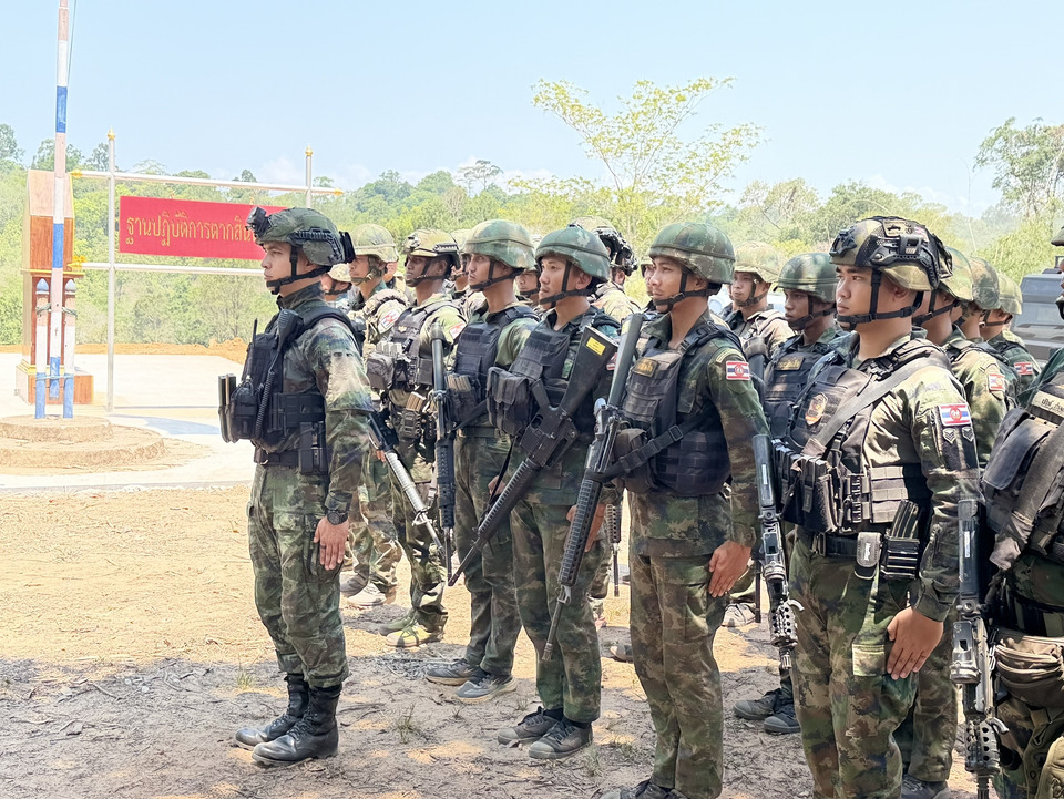 (16 เม.ย.69) พลเรือเอก ไพโรจน์ เฟื่องจันทร์ ผู้บัญชาการทหารเรือ พร้อมด้วยพลเรือโท อภิชาติ ทรัพย์ประเสริฐ ผู้บัญชาการหน่วยบัญชาการนาวิกโยธิน และผู้บัญชาการกองบัญชาการป้องกันชายแดนจันทบุรีและตราด หรือ กปช.จต. เดินทางลงพื้นที่บ้าน 3 หลัง พื้นที่บ้านหนองรี ตำบลชำราก อำเภอเมือง จังหวัดตราด ที่ก่อนหน้านี้ฝ่ายกัมพูชา มาสร้างบ้านเรือนรุกล้ำแผ่นดินไทย เพื่อตรวจเยี่ยม และให้กำลังใจกำลังพลที่ปฏิบัติหน้าที่อยู่หน้าแนว โดยมีนาวาเอก ปรัชญา โพธิ์ย้อย ผู้บังคับหน่วยเฉพาะกิจนาวิกโยธินตราด กล่าวรายงาน และต้อนรับ