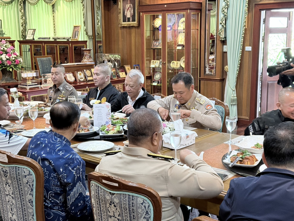 นายสรรเพชร บุญญามณี รัฐมนตรีช่วยว่าการกระทรวงคมนาคม พล.อ.ชัยพฤกษ์ ด้วงประพัฒน์ เสนาธิการทหารบก พล.อ.อุกฤษณ์ บุญตานนท์ ผู้บัญชาการทหารสูงสุด, พล.ร.อ.ไพรโรจน์ เฟื่องจันทร์ ผู้บัญชาการทหารเรือ และ พล.ต.อ.สำราญ นวลมา รองผู้บัญชาการตำรวจแห่งชาติ โดยบรรยากาศเป็นไปอย่างชื่นมื่น