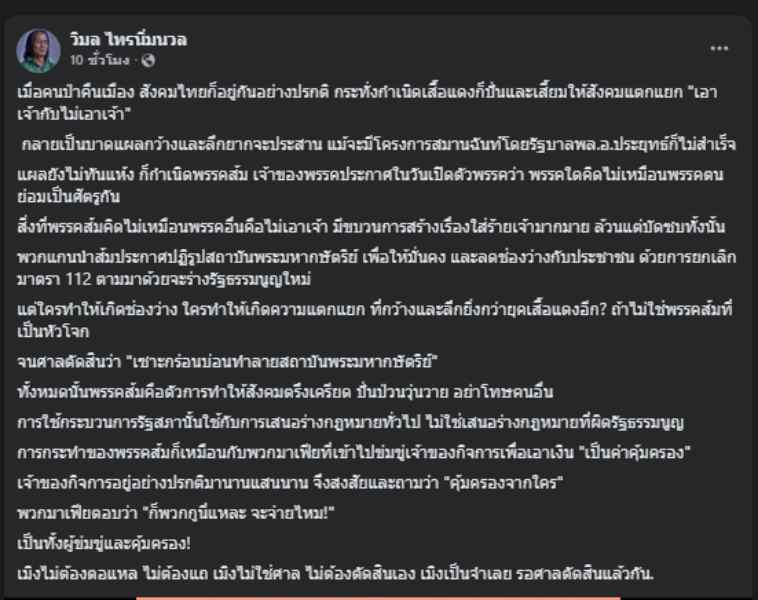สิ่งที่พรรคส้มคิดไม่เหมือนพรรคอื่นคือไม่เอาเจ้า มีขบวนการสร้างเรื่องใส่ร้ายเจ้ามากมาย ล้วนแต่บัดซบทั้งนั้น