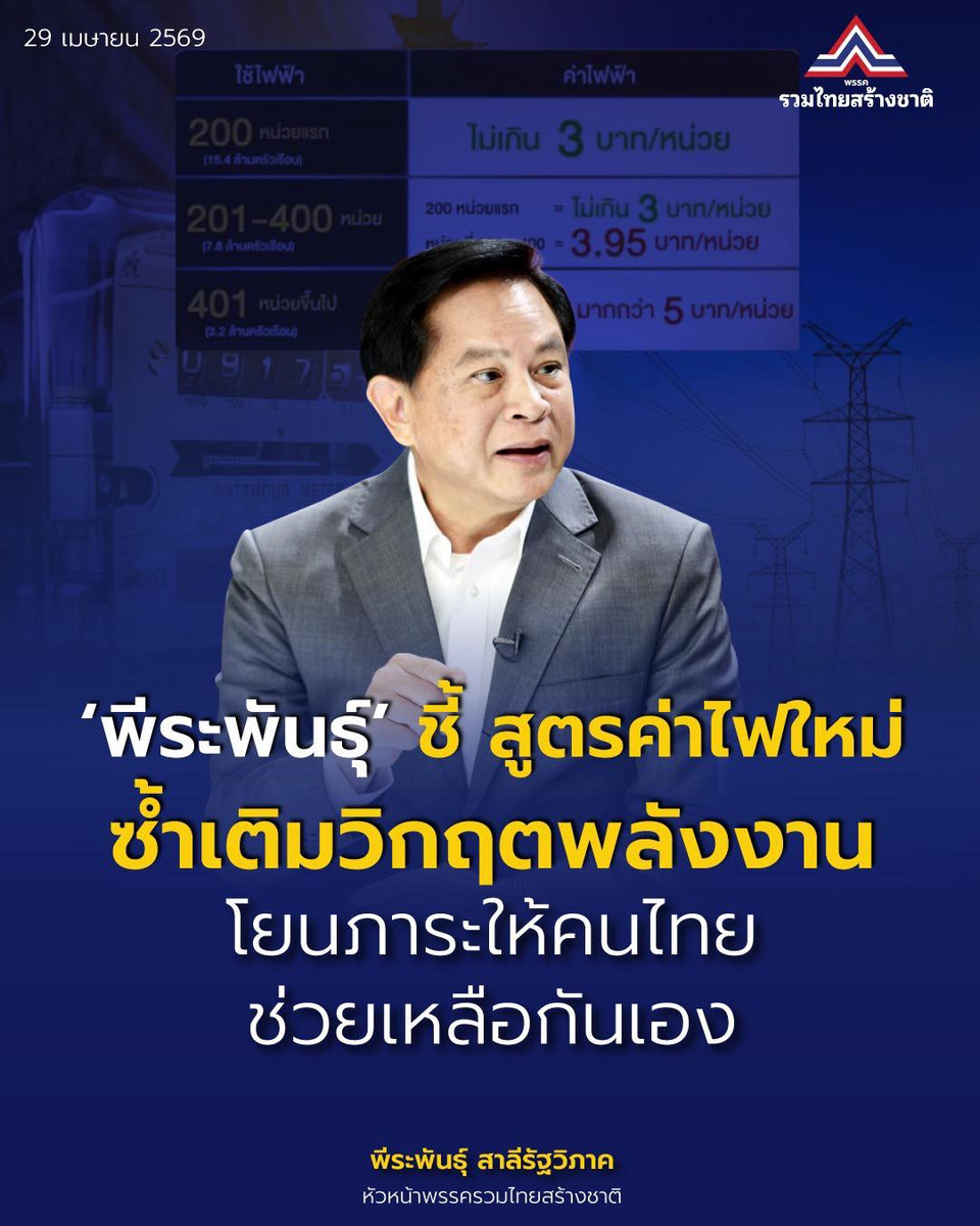 #พีระพันธุ์สาลีรัฐวิภาค #พรรครวมไทยสร้างชาติ #รวมไทยสร้างชาติ #สูตรค่าไฟใหม่ #ค่าไฟฟ้าแบบขั้นบันได