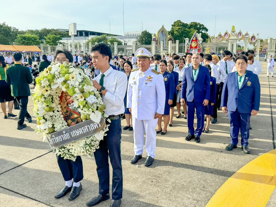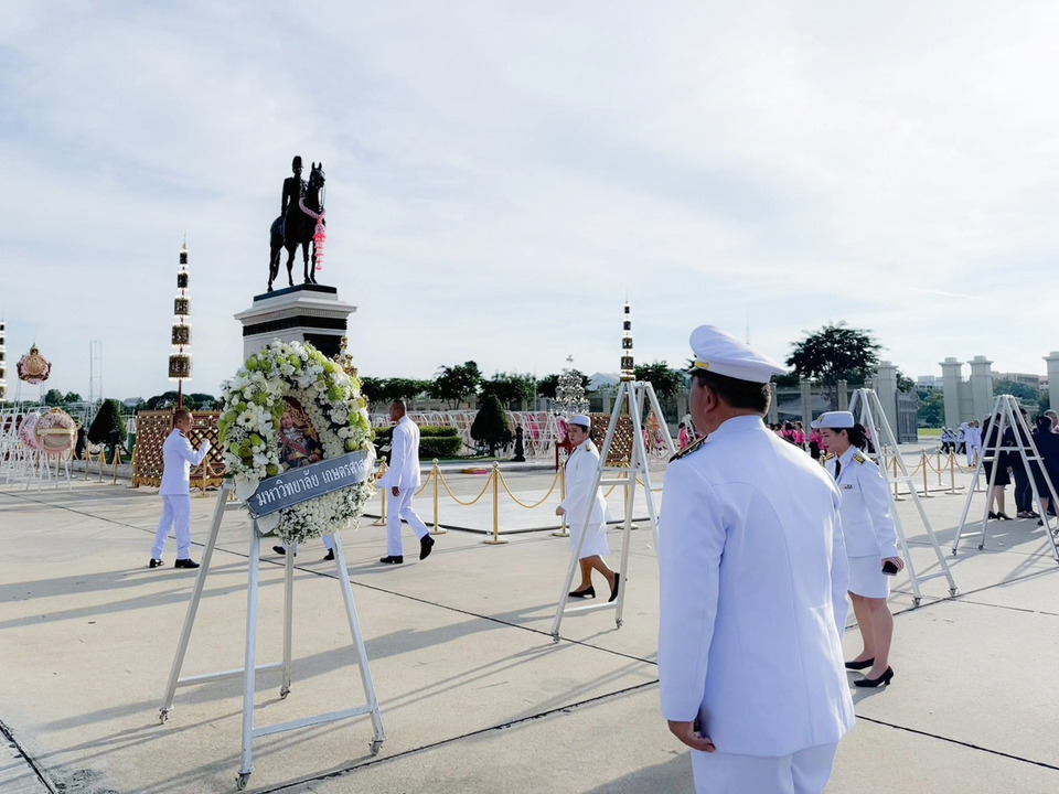 ชาวมหาวิทยาลัยเกษตรศาสตร์ นำโดยผู้ช่วยศาสตราจารย์ รัชด ชมภูนิช รองอธิการบดีฝ่ายกิจการนิสิตและพัฒนาอย่างยั่งยืน พร้อมด้วย ผู้อำนวยการกองพัฒนานิสิต ผู้บริหาร บุคลากรกองพัฒนานิสิต และผู้แทนคณะผู้นำนิสิตจาก องค์การบริหาร องค์การนิสิต สภาผู้แทนนิสิต องค์การนิสิต และสโมสรนิสิต เข้าร่วมพิธีถวายบังคมและวางพวงมาลา ณ อนุสาวรีย์พระบรมรูปทรงม้า หน้าพระลานพระราชวังดุสิต