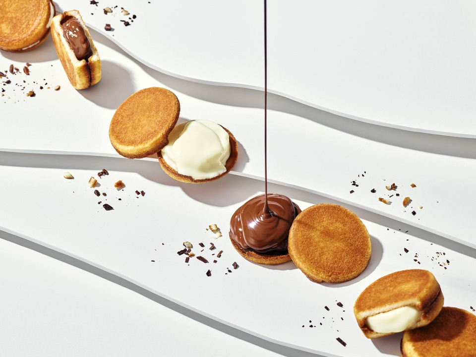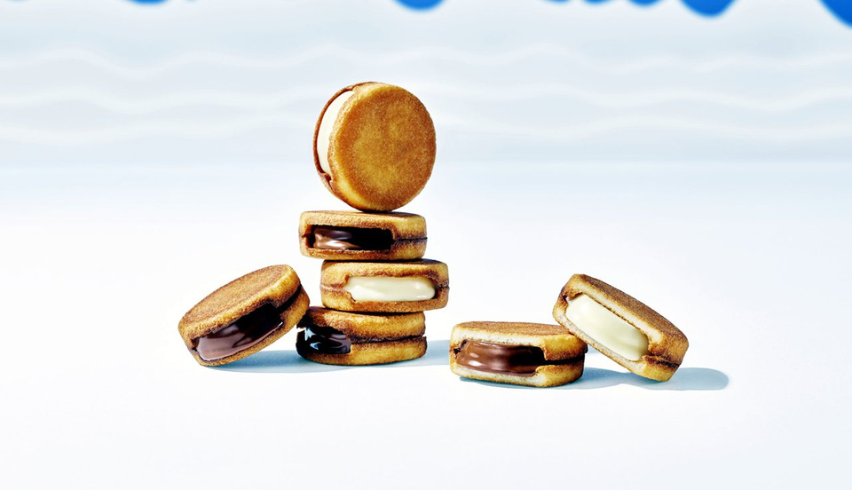 มีให้เลือก 2 รสชาติ คือ ไวท์ช็อกโกแลต และมิลค์ช็อกโกแลต ใช้ครีมช็อกโกแลตที่ทำจากนมโคเลี้ยงแบบ ปล่อยอิสระของทางแบรนด์ แล้วประกบด้วยคุกกี้รังด์ดูชาหอมกรอบ