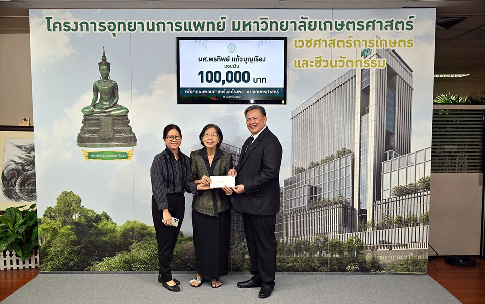ติดตามเพจคณะแพทยศาสตร์ มหาวิทยาลัยเกษตรศาสตร์ ก้าวสำคัญในการรับใช้สังคมและประเทศชาติของมหาวิทยาลัยเกษตรศาสตร์ในทศวรรษที่ 9 ได้ที่ https://www.facebook.com/profile.php?id=100086218923974