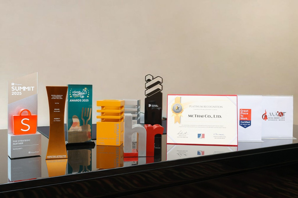 บริษัท แมคไทย จำกัด ผู้นำธุรกิจร้านอาหารบริการด่วน (QSR) ภายใต้แบรนด์แมคโดนัลด์ ประเทศไทย คว้า 10 รางวัลอันทรงเกียรติจากหลายเวทีทั้งในประเทศและระดับสากล ครอบคลุมทั้งด้านกลยุทธ์ทางการตลาด, ทรัพยากรบุคคล และการสร้างผลกระทบเชิงบวกแก่สังคม ตอกย้ำความสำเร็จรอบด้านขององค์กรที่มุ่งมั่นสู่ความเป็นเลิศทางธุรกิจ พร้อมส่งมอบคุณค่าคืนสู่พนักงานและสังคมไทยอย่างต่อเนื่อง