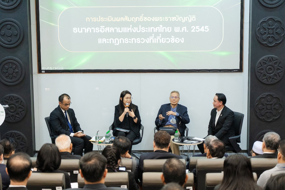ดร. ทวีลาภ ฤทธาภิรมย์ เปิดเผยว่า “การประเมินผลสัมฤทธิ์ของพระราชบัญญัติธนาคารอิสลามแห่งประเทศไทย พ.ศ. 2545 และกฎกระทรวงที่เกี่ยวข้องเป็นขั้นตอนสำคัญในการทบทวนบทบาทและกลไกการดำเนินงานของธนาคารภายใต้หลักชะรีอะฮ์ ท่ามกลางสภาพแวดล้อมทางเศรษฐกิจ สังคม และเทคโนโลยีที่เปลี่ยนแปลงอย่างรวดเร็ว เพื่อให้กฎหมายสามารถรองรับการพัฒนาระบบการเงินอิสลามของประเทศได้อย่างมีประสิทธิภาพในอนาคต โดยงานเสวนาในวันนี้เป็นการเปิดพื้นที่ให้ผู้เชี่ยวชาญ หน่วยงานภาครัฐ ภาควิชาการ ผู้นำศาสนา ผู้ประกอบการ และผู้ใช้บริการของธนาคาร ได้สะท้อนมุมมองและข้อเสนอแนะอย่างรอบด้าน เพื่อร่วมกันกำหนดแนวทางพัฒนากฎหมายให้สอดคล้องกับความต้องการของประชาชน และทิศทางระบบการเงินอิสลามในอนาคต ซึ่งจะเป็นข้อมูลสำคัญในการยกระดับกฎหมาย ให้สามารถตอบโจทย์ประชาชนและการพัฒนาประเทศได้อย่างยั่งยืน”