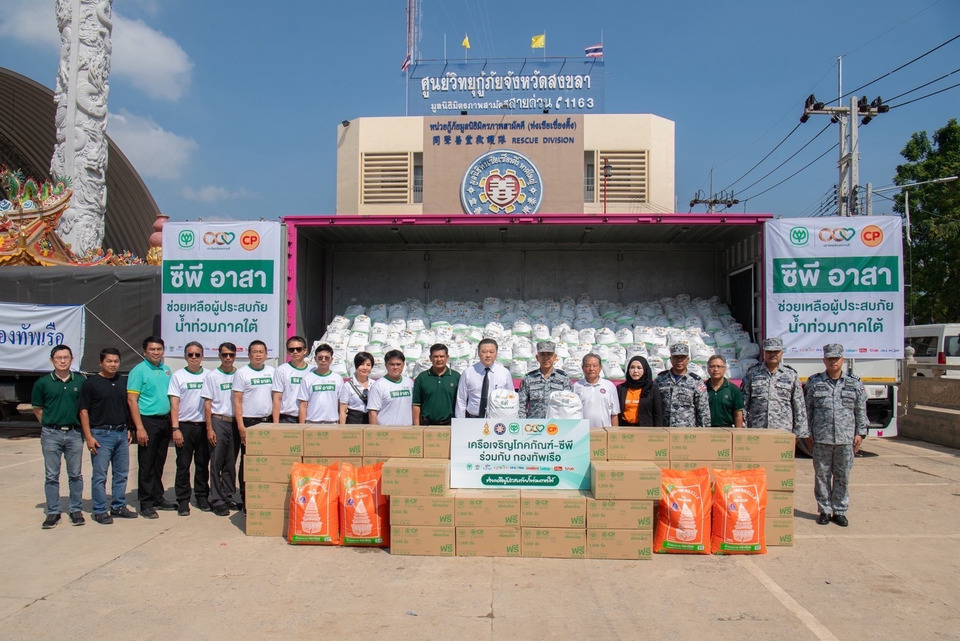 ทั้งนี้ ตลอดช่วงน้ำท่วมภาคใต้ที่ผ่านมาจนถึงปัจจุบัน เครือเจริญโภคภัณฑ์ (ซีพี) และกลุ่มธุรกิจในเครือได้ระดมพลัง “ซีพีอาสา ร้อยเรียงความดี ช่วยเหลือผู้ประสบภัยน้ำท่วมภาคใต้” เข้าช่วยเหลือผู้ประสบภัยน้ำท่วมภาคใต้รวมกว่า 127 จุด ครอบคลุม 8 จังหวัด 21 อำเภอ ผ่านการสนับสนุนถุงกำลังใจ 6,350 ชุด วัตถุดิบของสด 28,618 กิโลกรัม ไข่ไก่สด 300,000 ฟอง ไข่สมุนไพรซีพี 130,000 ฟอง อาหารอุ่นพร้อมทาน 22,100 กล่อง เบเกอรี่ 19,000 ชิ้น น้ำดื่ม 76,800 ขวด หน้ากากอนามัย 130,000 ชิ้น ซิมทรู 500 ซิม ข้าวสารตราฉัตร 12,240 กิโลกรัม ข้าวไข่เจียว 8,950 จาน พร้อมส่งรถ –เรือ–อุปกรณ์กู้ภัยและซิมสื่อสารกว่า 500 ซิมลงพื้นที่ รวมถึงการเปิดโรงครัว 9 จุดและสนับสนุนโรงครัวภาคีเครือข่ายอื่น ๆ ทั้งภาครัฐและเอกชนในหลายพื้นที่ ซึ่งทั้งหมดเป็นความร่วมมือจากทุกบริษัทในเครือเพื่อร่วมบรรเทาความเดือดร้อนและฟื้นฟูชุมชนภาคใต้อย่างเร่งด่วนและต่อเนื่อง