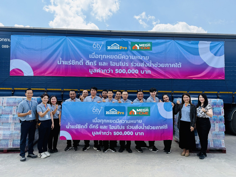 โฮมโปร-เมกาโฮม รวมพลังพันธมิตร ส่งต่อพลังน้ำใจไทยมอบ “สินค้าช่วยฟื้นฟูบ้าน-น้ำแร่ซิกตี้ ดีกรี” ช่วยเหลือผู้ประสบภัยภาคใต้