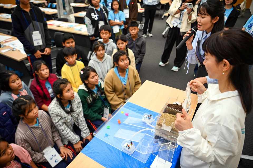 เด็กชายนาคินทร์ อยู่ขอม แกนนำนักเรียนที่เข้าร่วมโครงการฯ จากโรงเรียนวัดเขาน้อย จังหวัดระยอง กล่าวว่า “รู้สึกดีใจมากที่โรงเรียนได้รับรางวัลชนะเลิศและได้มาทัศนศึกษาที่ประเทศญี่ปุ่น ประทับใจกับกิจกรรมเวิร์กช็อปและการเรียนรู้นอกห้องเรียน ที่ทำให้ผมได้เข้าใจเกี่ยวกับวัฏจักรน้ำ ระบบนิเวศของป่าไม้ และความเชื่อมโยงระหว่างสัตว์ป่า ดิน และน้ำได้อย่างลึกซึ้งยิ่งขึ้น นอกจากนี้ สิ่งที่ผมประทับใจมากเกี่ยวกับประเทศญี่ปุ่น คือ การทิ้งและคัดแยกขยะอย่างถูกต้องและเป็นระเบียบ รวมถึงการใส่ใจสิ่งแวดล้อม ผมตั้งใจจะนำความรู้ที่ได้รับจากการเดินทางครั้งนี้ โดยเฉพาะเรื่องการคัดแยกและจัดการขยะอย่างถูกต้อง กลับไปปรับใช้ในโรงเรียน และจะชวนเพื่อน ๆ น้อง ๆ มาร่วมดูแลรักษาทรัพยากรน้ำและสิ่งแวดล้อมไปด้วยกันครับ”