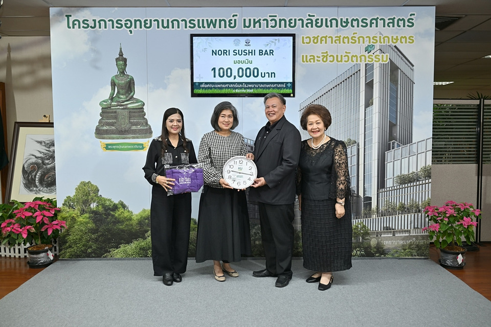 ดร.ดำรงค์ ศรีพระราม รักษาการแทนอธิการบดีมหาวิทยาลัยเกษตรศาสตร์ รับมอบเงินบริจาคจากภาคเอกชนผู้ใจบุญเพื่อร่วมสมทบการก่อสร้างคณะแพทยศาสตร์และโรงพยาบาลเกษตรศาสตร์ โครงการอุทยานการแพทย์มหาวิทยาลัยเกษตรศาสตร์ ดังนี้ บริษัท วีกรีน เคยู จำกัด โดย รศ. ดร.รัตนาวรรณ มั่งคั่ง กรรมการผู้จัดการ มอบเงินจำนวน 200,000 บาท และ NORI SUSHI BAR โดย คุณกนกวรรณ ฤทธิสมิต มอบเงินจำนวน 100,000 บาท โอกาสนี้ ผศ.ดร.นุชนาถ มั่งคั่ง รองอธิการบดีฝ่ายการเงินและกิจกรรมพิเศษ มก. ร่วมเป็นสักขีพยาน ณ ห้องอธิการบดี อาคารสารนิเทศ 50 ปี มหาวิทยาลัยเกษตรศาสตร์