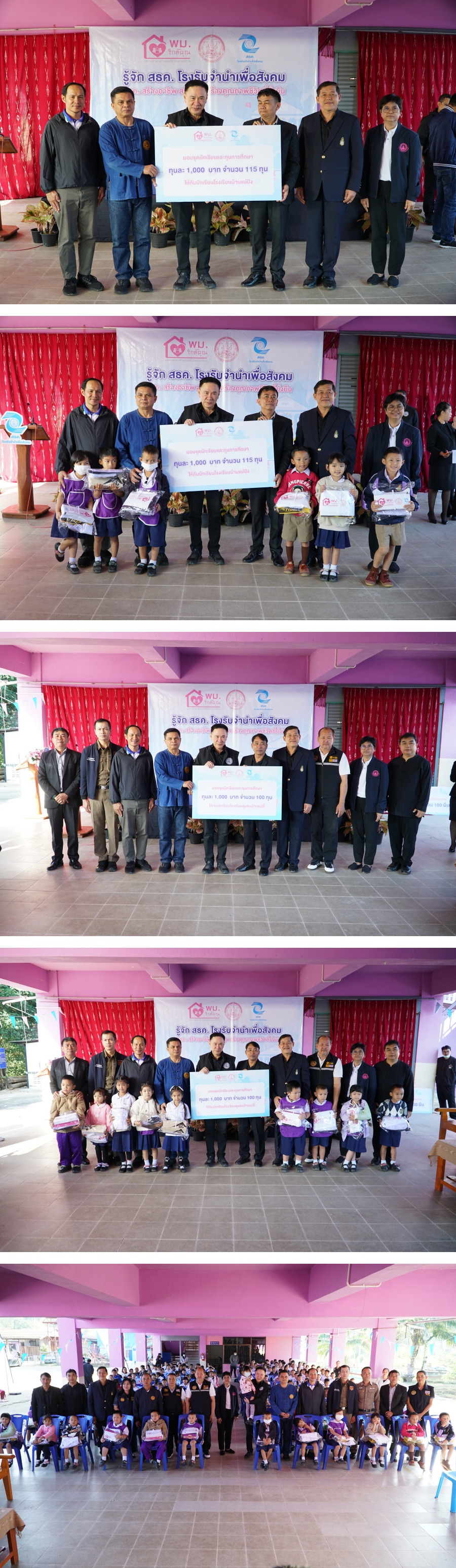 ทุนการศึกษา ทุนละ 1,000 บาท พร้อมชุดนักเรียน รองเท้า และถุงเท้า รวม 115 ชุด ให้แก่ตัวแทนนักเรียนโรงเรียนบ้านแม่ปิง