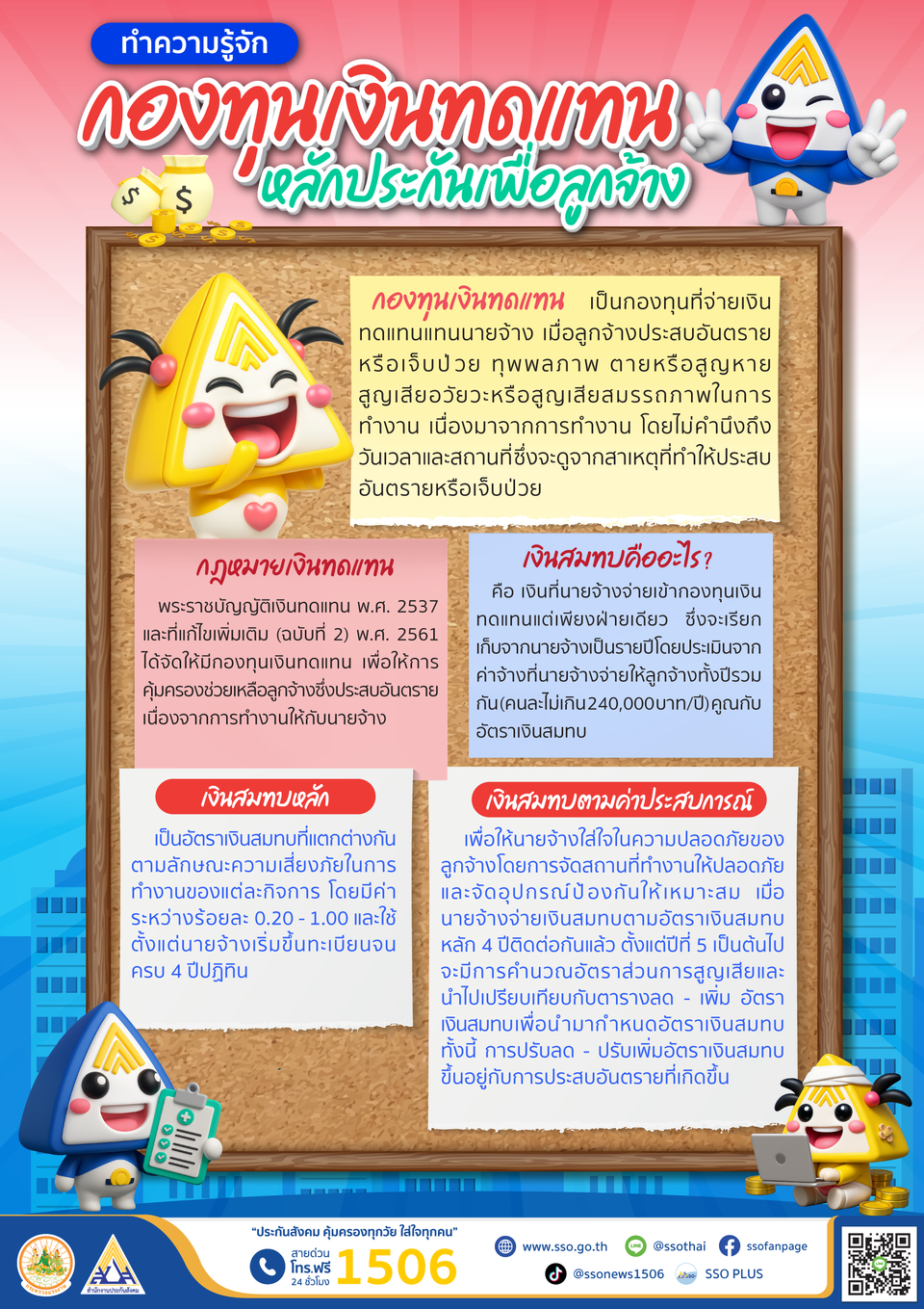 มาทำความรู้จักกองทุนเงินทดแทนกันเถอะว่าคืออะไร มีการคุ้มครองด้านใดบ้าง? เพื่อความอุ่นใจของทั้งนายจ้างและลูกจ้าง และรู้จักกับเงินสมทบ ที่จะเป็นส่วนสำคัญในการขับเคลื่องกองทุนเงินทดแทน เพื่อพัฒนาและส่งเสริมคุณภาพชีวิตแรงงานไทย
