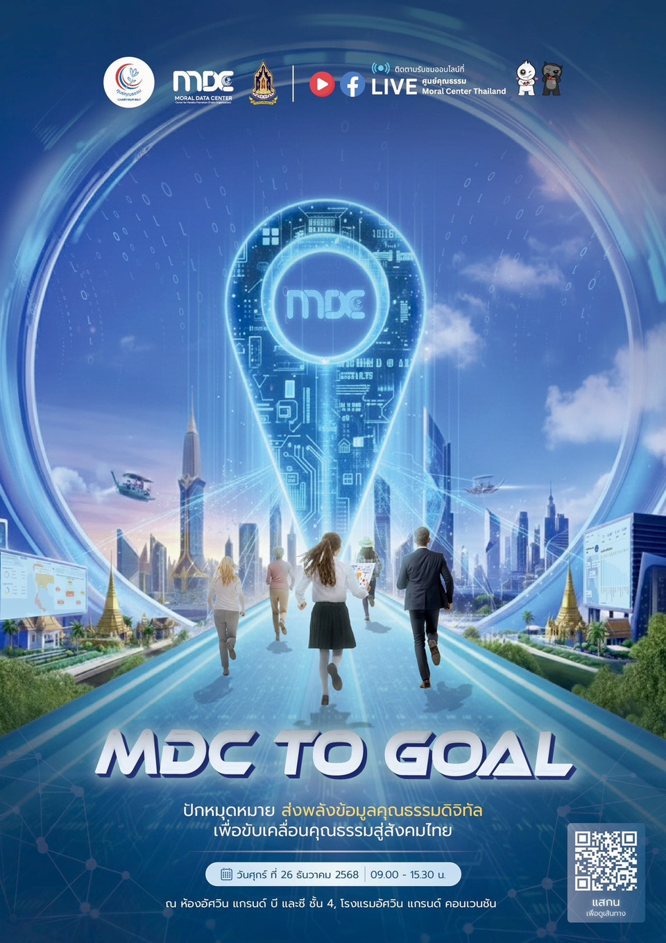 ศูนย์คุณธรรม (องค์การมหาชน) โดย รองศาสตราจารย์ นพ.สุริยเดว ทรีปาตี ผู้อำนวยการศูนย์คุณธรรม ขอเชิญองค์กรภาคีเครือข่าย เข้าร่วมงานอบรมเชิงปฏิบัติการและเวทีรับฟังความคิดเห็นการนำข้อมูลไปใช้ประโยชน์ “ระบบศูนย์กลางข้อมูลสารสนเทศด้านคุณธรรม (Moral Data Center : MDC)” ภายใต้แนวคิด “MDC TO GOAL : ปักหมุดหมาย ส่งพลังข้อมูลคุณธรรมดิจิทัล เพื่อขับเคลื่อนคุณธรรมสู่สังคมไทย” เพื่อเสริมสร้างศักยภาพเครือข่ายและหน่วยงานพันธมิตรในการเข้าถึง ใช้ประโยชน์ และร่วมพัฒนาระบบฐานข้อมูลคุณธรรมให้สามารถตอบโจทย์การใช้งานจริงในทุกระดับ