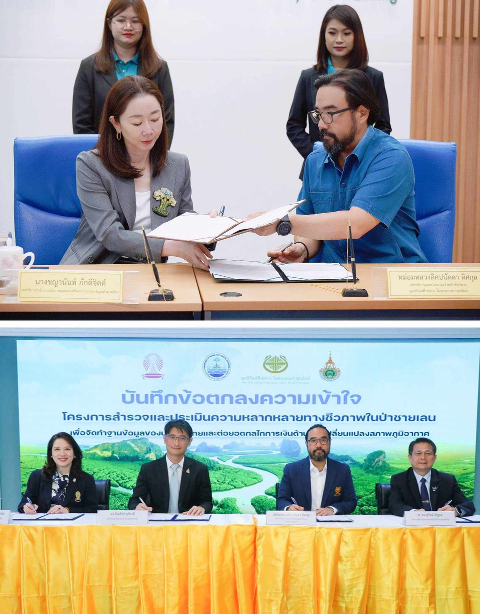 อีกหนึ่งความร่วมมือสำคัญในปีเดียวกันคือการทำงานร่วมกับกรมทรัพยากรทางทะเลและชายฝั่ง จุฬาลงกรณ์มหาวิทยาลัย และมหาวิทยาลัยเทคโนโลยีราชมงคลศรีวิชัย เพื่อสำรวจความหลากหลายทางชีวภาพของป่าชายเลนในจังหวัดตรัง พื้นที่ที่ทางมูลนิธิฯ ร่วมดูแลอยู่กับชุมชนในพื้นที่ และภาคเอกชนซึ่งเป็นระบบนิเวศที่มีบทบาทสำคัญต่อยุทธศาสตร์คาร์บอนสีน้ำเงิน (Blue Carbon) ของโลก การสร้างฐานข้อมูลที่เป็นมาตรฐานระดับประเทศจึงเป็นก้าวสำคัญที่สะท้อนบทบาทของมูลนิธิฯ ในฐานะผู้ทำงานภาคสนามที่เชื่อมโยงนักวิชาการ หน่วยงานรัฐ และชุมชนเข้าด้วยกัน