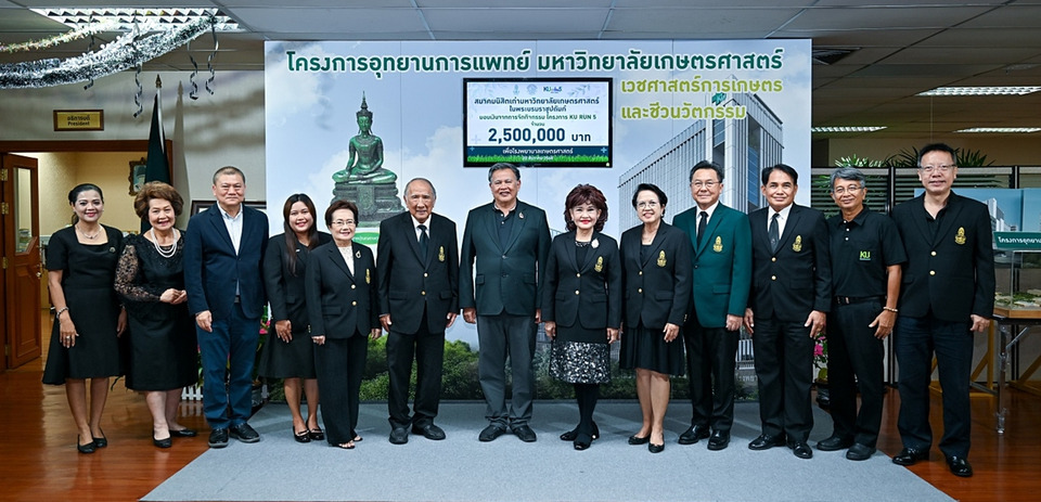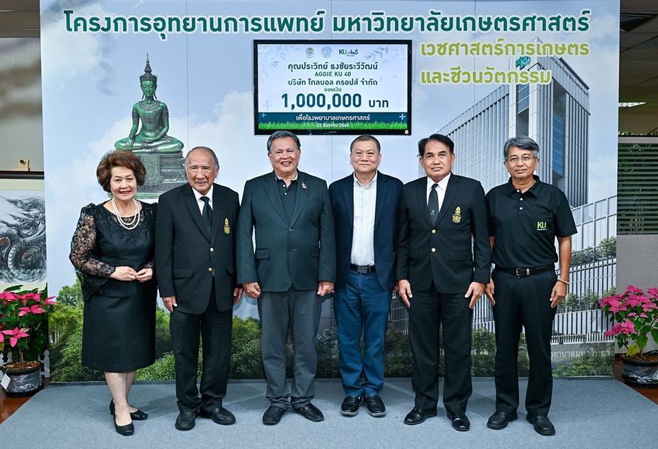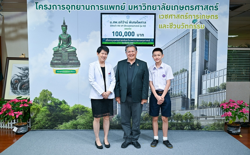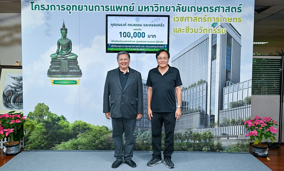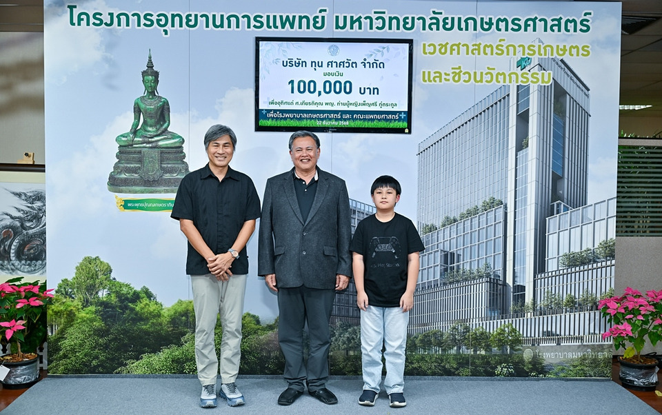 ผู้มีจิตศรัทธา ภาคเอกชน สมาคม และนิสิตเก่า มหาวิทยาลัยเกษตรศาสตร์ ร่วมบริจาคเงินกว่า 5 ล้านบาท สนับสนุนการก่อสร้างคณะแพทยศาสตร์และโรงพยาบาลมหาวิทยาลัยเกษตรศาสตร์ ขนาด 400 เตียง รองรับเวชศาสตร์การเกษตรและชีวนวัตกรรม