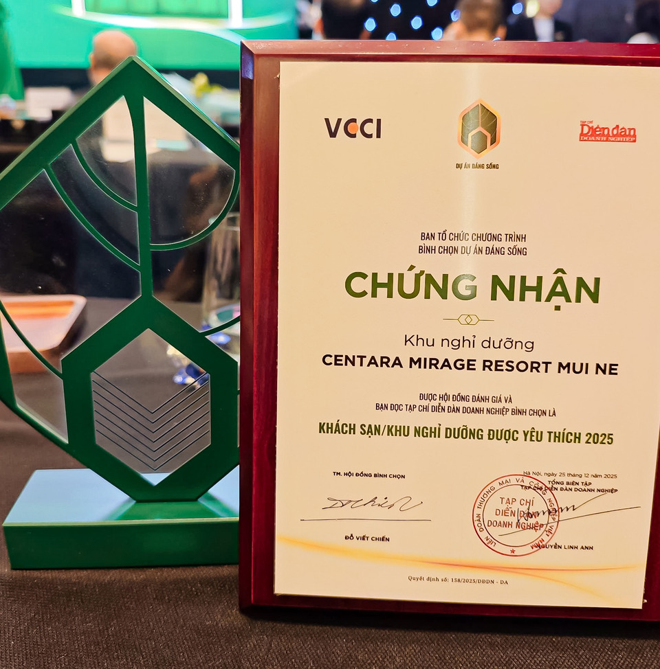 เซ็นทารา มิราจ รีสอร์ท มุยเน่ รับมอบรางวัล “โรงแรมยอดนิยมประจำปี 2025” จากเวที Livable Projects Awards ในเวียดนาม