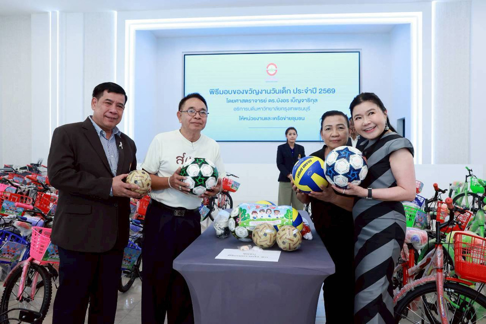เมื่อวันที่ 8 มกราคม 69 ที่อาคาร BTU Hall มหาวิทยาลัยกรุงเทพธนบุรี ศาสตราจารย์ ดร.บังอร เบ็ญจาธิกุล อธิการบดี มหาวิทยาลัยกรุงเทพธนบุรี (มกธ.) พร้อมด้วย รองศาสตราจารย์ ดร.ดวงฤทธิ์ เบ็ญจาธิกุล ชัยรุ่งเรือง ร่วมส่งมอบความสุขและรอยยิ้มให้แก่เด็กๆ เนื่องในโอกาสวันเด็กแห่งชาติ ประจำปี 2569 โดยมอบจักรยาน จำนวน 125 คัน และชุดอุปกรณ์กีฬา จำนวน 2 ชุด เพื่อสนับสนุนการเรียนรู้ เสริมสร้างสุขภาพ และพัฒนาศักยภาพของเยาวชนไทย