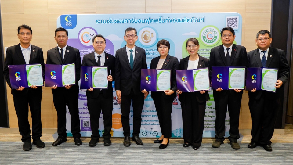 พิธีมอบประกาศนียบัตรจัดขึ้น ณ สถาบันเพื่อการยุติธรรมแห่งประเทศไทย โดยมี ดร.วิจารย์ สิมาฉายา ประธานกรรมการองค์การบริหารจัดการก๊าซเรือนกระจกเป็นประธานในพิธี ภายในงานมีการมอบเครื่องหมายรับรองฉลากคาร์บอนรวม 5 ประเภท ได้แก่ คาร์บอนฟุตพริ้นท์ของผลิตภัณฑ์ (Carbon Footprint of Product: CFP) การลดคาร์บอนฟุตพริ้นท์ของผลิตภัณฑ์ (Carbon Footprint Reduction: CFR) หรือฉลากลดโลกร้อน คาร์บอนฟุตพริ้นท์ของผลิตภัณฑ์เศรษฐกิจหมุนเวียน (Carbon Footprint of Circular Economy Product CE-CFP) คาร์บอนฟุตพริ้นท์ขององค์กร (Carbon Footprint for Organization: CFO) และคาร์บอนนิวทรัลประเภทองค์กร (Carbon Neutral Corporate: CNC) โดยมี 135 องค์กรที่ได้รับประกาศนียบัตร