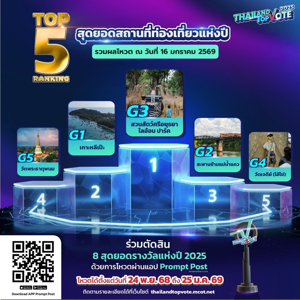 สามารถติดตามกติกาเพิ่มเติมและร่วมเป็นส่วนหนึ่งของรางวัล “Thailand Top Vote 2025” ได้ทาง https://thailandtopvote.mcot.net/