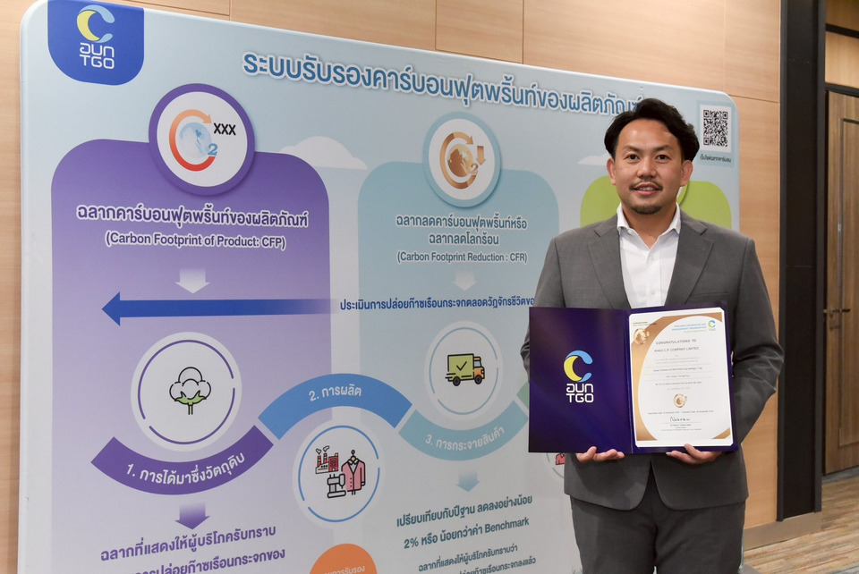 โดยคุณปุณฑริก ตติยไพบูลย์ ผู้ช่วยกรรมการผู้จัดการ ตัวแทนข้าวตราฉัตร รับมอบใบประกาศนียบัตรเครื่องหมายรับรองฉลากคาร์บอน ซึ่งข้าวฉัตรไลท์ กข43 มีค่าการปล่อยก๊าซเรือนกระจกต่ำเพียง 2.03 กิโลกรัมคาร์บอนเทียบเท่าต่อกิโลกรัมข้าวสาร สะท้อนความมุ่งมั่นในการลดผลกระทบต่อสิ่งแวดล้อม และการก้าวสู่เป้าหมายความเป็นกลางทางคาร์บอน (Carbon Neutrality) และ Net Zero ในอนาคต