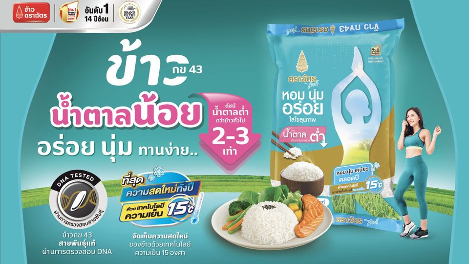 โดยข้าวฉัตรไลท์ กข43 เป็นนวัตกรรมข้าวเพื่อสุขภาพที่ได้รับความนิยม ด้วยค่าดัชนีน้ำตาล (GI) ปานกลางค่อนข้างต่ำ ข้าวนุ่ม หอม อร่อยตลอดปี จากเทคโนโลยีการจัดเก็บที่อุณหภูมิ 15 องศาเซลเซียส และผ่านการตรวจสอบสายพันธุ์กข43 แท้ระดับDNA เหมาะสำหรับผู้ที่ต้องการควบคุมน้ำหนัก ควบคุมระดับน้ำตาลในเลือด คุณแม่ตั้งครรภ์ รวมถึงผู้บริโภคที่ใส่ใจสุขภาพ