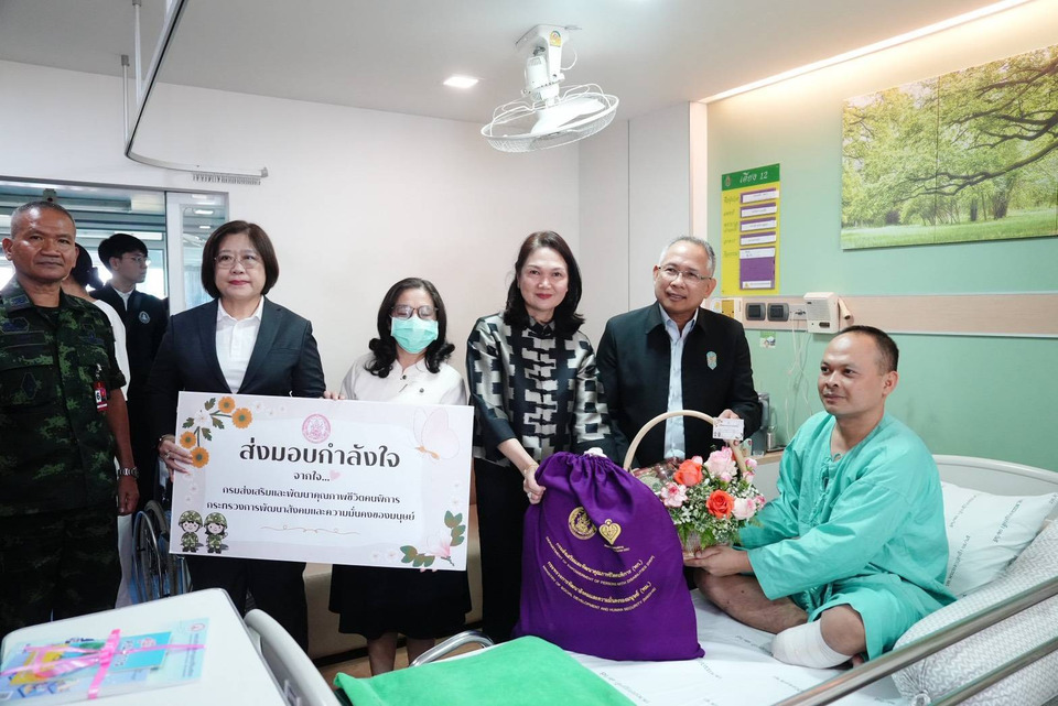 วันที่ 16 มกราคม 2569 นายกันตพงศ์ รังษีสว่าง ปลัดกระทรวงการพัฒนาสังคมและความมั่นคงของมนุษย์ (ปลัด พม.) พร้อมด้วย นางสาวสนธยา บุณยภูษิต อธิบดีกรมส่งเสริมและพัฒนาคุณภาพชีวิตคนพิการ ผู้บริหารกองทัพบก และองค์การสงเคราะห์ทหารผ่านศึก ศูนย์ปฏิบัติการทุ่นระเบิดแห่งชาติ ลงพื้นที่เยี่ยมให้กำลังใจ พร้อมมอบสิ่งของช่วยเหลือทหารจำนวน 6 นายที่สูญเสียอวัยวะจากการปฏิบัติหน้าที่ราชการสนามในสถานการณ์ความไม่สงบในพื้นที่ชายแดนไทย - กัมพูชา ณ ตึกเวชศาสตร์ฟื้นฟู โรงพยาบาลพระมงกุฎเกล้า กรุงเทพฯ