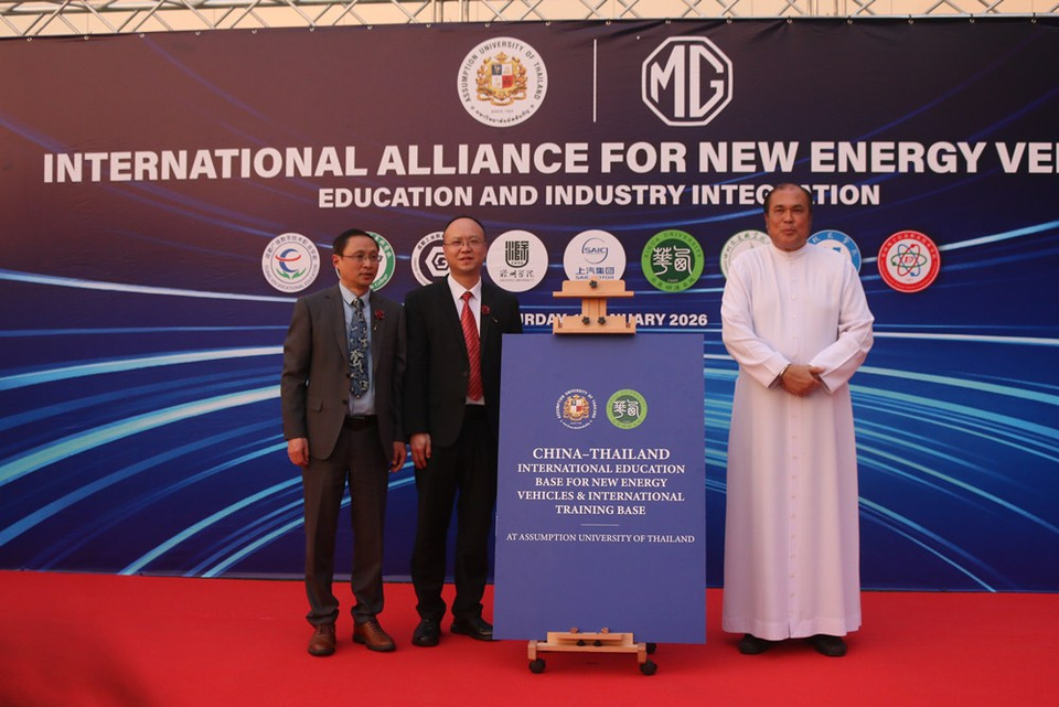 วันที่ 17 มกราคม 2569 ณ มหาวิทยาลัยอัสสัมชัญ วิทยาเขตสุวรรณภูมิ –อาคาร คาเบรียล แมรี่ ศูนย์วิจัยและการเรียนรู้ด้านยานยนต์พลังงานใหม่ (Gabriel Mary Research and Learning Center for New Energy Vehicle Technology) ร่วมกับค่ายเอ็มจี ประเทศไทย และ เอส เอไอซี มอเตอร์ MG- SAIC Motor ท่านอธิการบดี ภราดา ดร. ศิริชัย ฟอนซีกา ได้ให้การต้อนรับ Mr. Da Shen Shen ประธานกรรมการ บริษัท เอส เอไอซี มอเตอร์ (SAIC Motor-CP) โดยได้รับเกียรติจาก ท่านรองศาสตราจารย์ ดร. กิตติชัย ไตรรัตนศิริชัย รองประธานคณะกรรมการ การอุดมศึกษา กระทรวงการอุดมศึกษา วิทยาศาสตร์ วิจัย และนวัตกรรม เป็นประธานร่วมเปิดศูนย์วิจัยและการเรียนรู้ ฯ ตลอดทั้งพันธมิตรมหาวิทยาลัย และ สถาบันการฝึกอบรมวิจัยพัฒนาเทคโนโลยีชั้นนำ และ ตัวแทนจากภาคอุตสาหกรรมและการลงทุนจากประเทศจีน ร่วมเป็นสักขีพยาน
