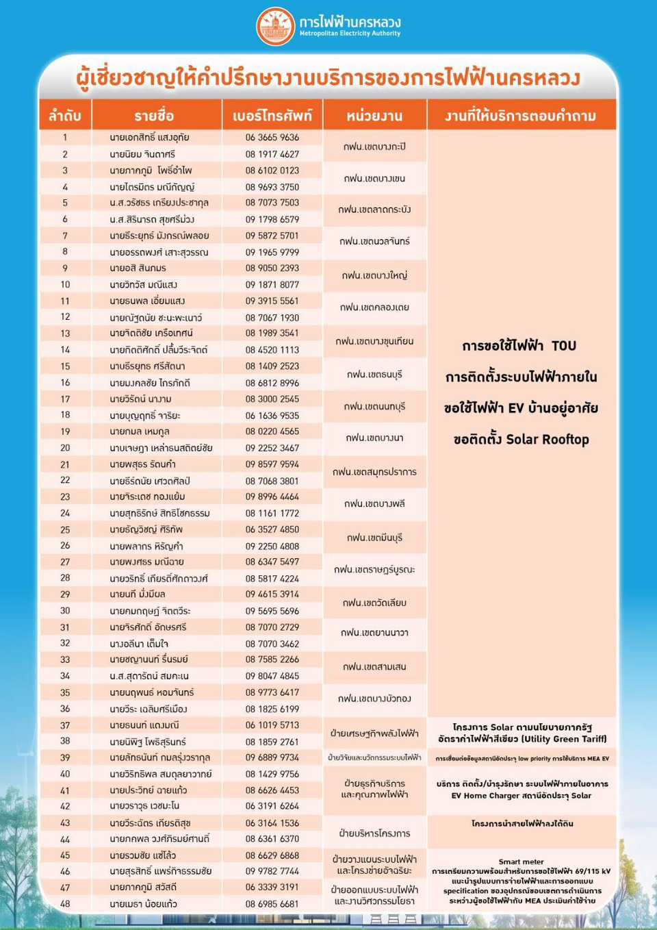 #MEA #การไฟฟ้านครหลวง #ผู้เชี่ยวชาญอาสาMEA #พลังงานเพื่อวิถีชีวิตเมืองมหานคร #SolarRooftop #EVCharger #สายไฟฟ้าลงดิน #TOU #SmartMeter #MEAEV