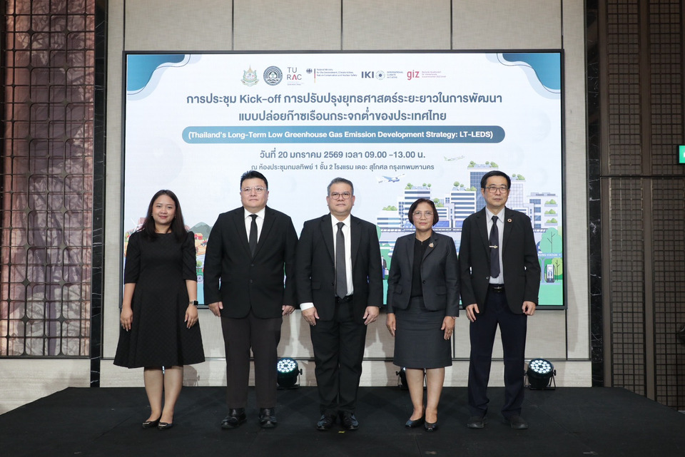 วันที่ 20 มกราคม 2569 กรมการเปลี่ยนแปลงสภาพภูมิอากาศและสิ่งแวดล้อม ร่วมกับ หน่วยวิจัยด้านพลังงานที่ยั่งยืนและสิ่งแวดล้อมสรรค์สร้างแห่งมหาวิทยาลัยธรรมศาสตร์ คณะสถาปัตยกรรมศาสตร์และการผังเมืองมหาวิทยาลัยธรรมศาสตร์ จัดประชุม Kick-off การปรับปรุงยุทธศาสตร์ระยะยาวในการพัฒนาแบบปล่อยก๊าซเรือนกระจกต่ำของประเทศไทย (Thailand’s Long - Term Low Greenhouse Gas Emission Development Strategy) หรือ LT-LEDS ยกระดับนโยบายลดก๊าซเรือนกระจกของประเทศไทย เสริมสร้างความมั่นคงทางเศรษฐกิจ สังคมและสิ่งแวดล้อมของประเทศไทยอย่างยั่งยืน โดยมี นายปวิช เกศววงศ์ รองอธิบดีกรมการเปลี่ยนแปลงสภาพภูมิอากาศและสิ่งแวดล้อม เป็นประธาน พร้อมด้วยผู้แทนจากหน่วยงานภาครัฐ ภาคเอกชน และภาคประชาสังคม เข้าร่วมประชุมกว่า 200 คน ณ โรงแรม เดอะ สุโกศล กรุงเทพมหานคร