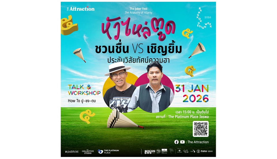 นอกจากนี้ ภายในงานยังมีกิจกรรมร่วมสนุกและของรางวัลให้ลุ้นอีกมากมาย ชวนทุกคนมาใช้เวลาหัวเราะ และปล่อยความฮาในตัวเองให้เต็มที่ นิทรรศการชมได้ตลอดระหว่างวันศุกร์ที่ 30 มกราคม – วันอาทิตย์ ที่ 8 กุมภาพันธ์ 2569 ส่วนงานเสวนา มีเฉพาะวันเสาร์ที่ 31 มกราคม ตั้งแต่เวลา 15.00 เป็นต้นไป ณ The Platinum Place (วัชรพล) ติดตามรายละเอียดกิจกรรมและความเคลื่อนไหวเพิ่มเติมได้ที่ Facebook: The Attraction