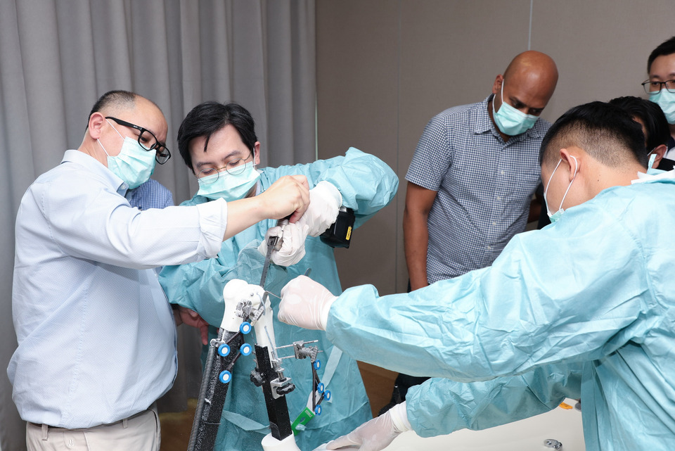 โดยโครงการ International Visiting Surgeon Program (VSP): Robotics Knee Replacement ครั้งนี้ มีคณะแพทย์จากประเทศมาเลเซีย เข้าร่วมการฝึกอบรมเชิงลึกด้านการผ่าตัดเปลี่ยนข้อเข่าด้วยหุ่นยนต์ โดยใช้เทคโนโลยี CORI Robotic System ซึ่งได้รับการยอมรับในระดับสากล หลักสูตรครอบคลุมการผ่าตัดทั้งแบบ Total Knee Arthroplasty (TKA) และ Unicompartmental Knee Arthroplasty (UKA) ผสานการเรียนรู้ทั้งภาคทฤษฎีและภาคปฏิบัติ ตั้งแต่การเตรียมห้องผ่าตัด การวางแผนผ่าตัด ไปจนถึงการฝึกปฏิบัติแบบ Hands-on ด้วยอุปกรณ์จำลอง (Sawbones) ภายใต้การดูแลของคณาจารย์แพทย์ผู้เชี่ยวชาญของประเทศไทย