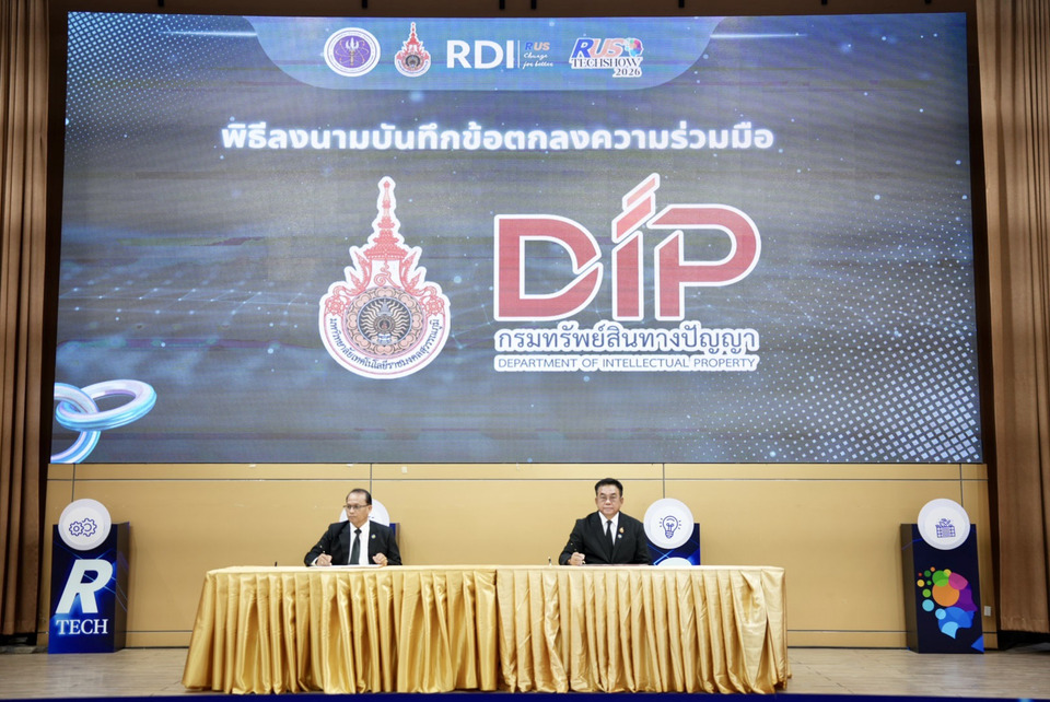 เมื่อวันที่ 28 มกราคม 2569 นางอรมน ทรัพย์ทวีธรรม อธิบดีกรมทรัพย์สินทางปัญญา มอบหมาย นายวิโรจน์ จงกลวานิชสุข รองอธิบดีกรมทรัพย์สินทางปัญญา เป็นผู้แทนกรมฯ ในพิธีลงนามบันทึกข้อตกลงความร่วมมือด้านทรัพย์สินทางปัญญา (MOU) ร่วมกับมหาวิทยาลัยเทคโนโลยีราชมงคลสุวรรณภูมิ เดินหน้าผลักดันนวัตกรรรมให้ได้รับการคุ้มครองทรัพย์สินทางปัญญา พร้อมส่งเสริมการบริหารจัดการสิทธิอย่างมีประสิทธิภาพ โดยการลงนาม MOU จัดขึ้นภายในงานแสดงผลงานวิจัย เทคโนโลยี และนวัตกรรมพร้อมใช้สู่ผู้ประกอบการและภาคอุตสาหกรรม (RUS Techshow 2026) ณ มหาวิทยาลัยเทคโนโลยีราชมงคลสุวรรณภูมิ ศูนย์พระนครศรีอยุธยา หันตรา จังหวัดพระนครศรีอยุธยา