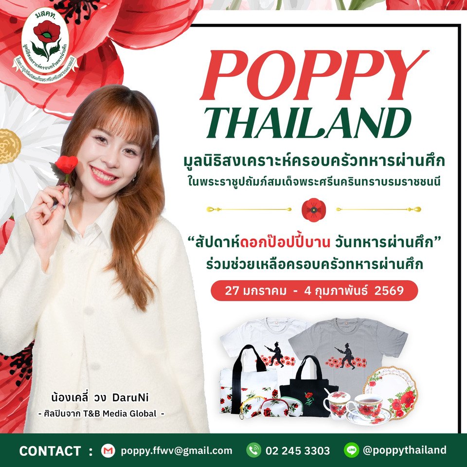 วันที่ระลึกทหารผ่านศึกจะเวียนมาบรรจบครบรอบอีกวาระหนึ่ง ในวันที่ 3 กุมภาพันธ์ 2569 มูลนิธิสงเคราะห์ครอบครัวทหารผ่านศึก ในพระราชูปถัมภ์สมเด็จพระศรีนครินทราบรมราชชนนี ได้จัดจำหน่ายดอกไม้ที่ระลึกวันทหารผ่านศึก (ดอกป๊อปปี้) เพื่อหารายได้สมทบทุนสงเคราะห์ครอบครัวทหาร ตำรวจ พลเรือนและอาสาสมัคร ที่อุทิศตนปฏิบัติหน้าที่ปกป้องประเทศชาติ โดยบริษัท ที แอนด์ บี มีเดีย โกลบอล (ประเทศไทย) จำกัด ได้ร่วมสนับสนุนเพื่อประชาสัมพันธ์ โดยส่งสองศิลปิน มีมี่ “พิมพ์มาดา ตั้งสี” และ เคลี่ “พรรณิภา วงษาชัย” วง DaruNi ศิลปินค่าย Rabbit Moon ร่วมถ่ายภาพนิ่งและสปอตโปรโมทเพื่อเชิญชวนร่วมอุดหนุน ดอกป๊อปปี้ และ ผลิตภัณฑ์ ใน “สัปดาห์ดอกป๊อปปี้บานวันทหารผ่านศึก” ตั้งแต่วันที่ 27 มกราคม ถึง วันที่ 4 กุมภาพันธ์ 2569